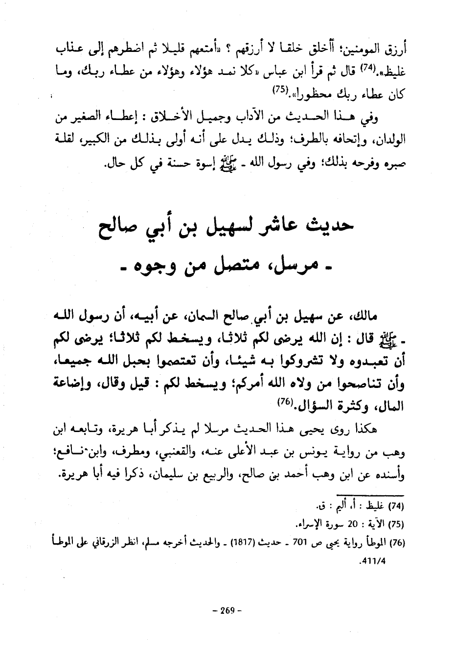 حَدِيثٌ عَاشِرٌ لِسُهَيْلِ بْنِ أَبِي صَالِحٍ مُرْسَلٌ مُتَّصِلٌ مِنْ وُجُوهٍ مَالِكٌ عَنْ سُهَيْلِ بْنِ أَبِي صَالِحٍ السَّمَّانِ عَنْ أَبِيهِ أَنَّ رَسُولَ اللَّهِ صَلَّى اللَّهُ عليه وسلم إِنَّ اللَّهَ يَرْضَى لَكُمْ ثَلَاثًا وَيَسْخَطُ لَكُمْ ثَلَاثًا يَرْضَى لَكُمْ أَنْ تَعْبُدُوهُ وَلَا تُشْرِكُوا به شيئا وأن تعتصموا بحبل الله جميع إن وَأَنْ تُنَاصِحُوا مَنْ وَلَّاهُ اللَّهُ أَمْرَكُمْ وَيَسْخَطُ لكم قيل وقل وَإِضَاعَةَ الْمَالِ وَكَثْرَةَ السُّؤَالِ هَكَذَا رَوَى يَحْيَى هَذَا الْحَدِيثَ مُرْسَلًا لَمْ يَذْكُرْ أَبَا هُرَيْرَةَ وَتَابَعَهُ ابْنُ وَهْبٍ مِنْ رِوَايَةِ يُونُسَ بْنِ عَبْدِ الْأَعْلَى عَنْهُ وَالْقَعْنَبِيِّ وَمُطَرِّفٍ وَابْنِ نَافِعٍ وَأَسْنَدَهُ عَنِ ابْنِ وَهْبٍ أَحْمَدُ بْنُ صَالِحٍ وَالرَّبِيعُ بْنُ سُلَيْمَانَ ذَكَرَا فِيهِ أَبَا هُرَيْرَةَ