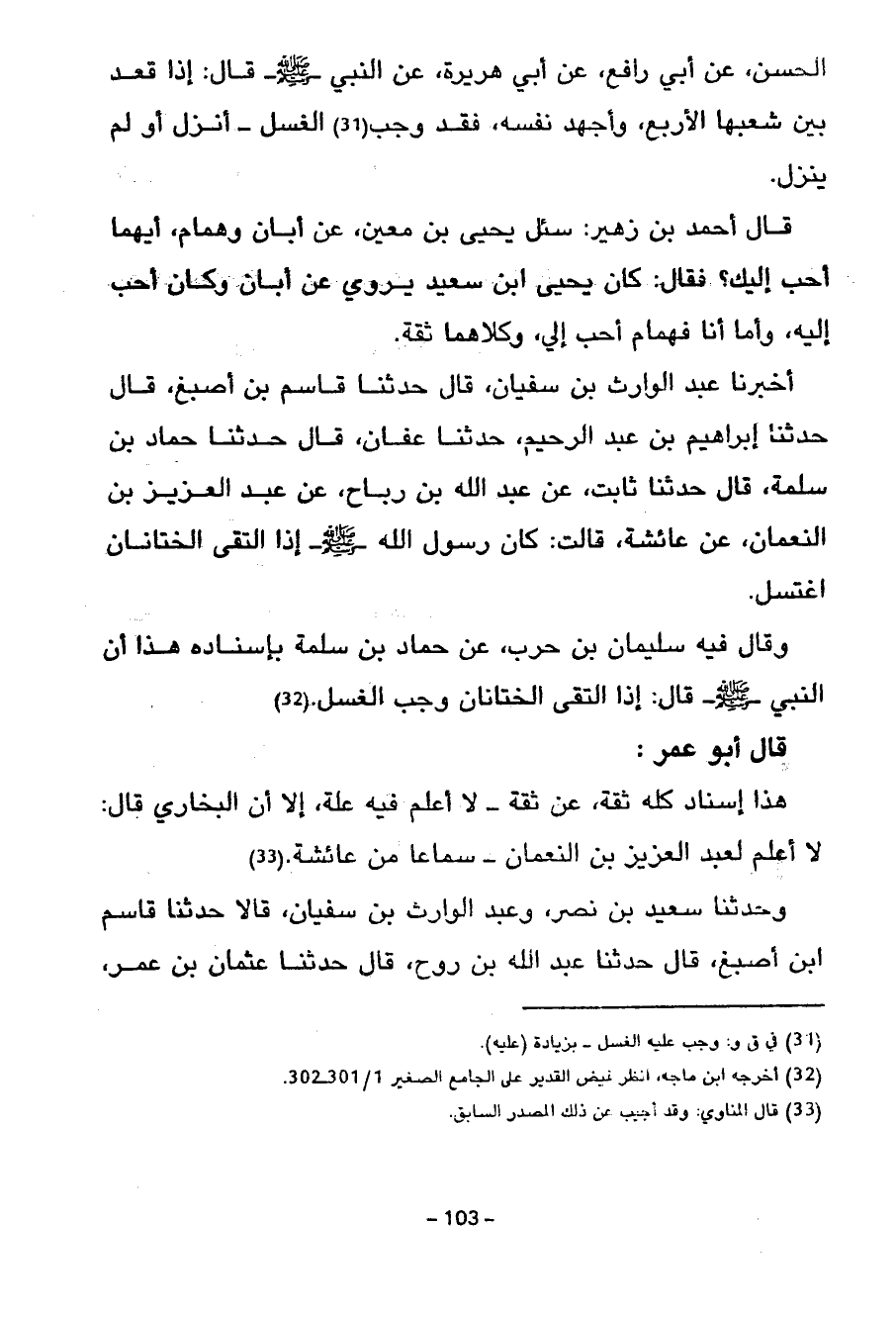 وَقَالَ فِيهِ سُلَيْمَانُ بْنُ حَرْبٍ عَنْ حَمَّادِ بْنِ سَلَمَةَ بِإِسْنَادِهِ هذا أن النبي قَالَ إِذَا الْتَقَى الْخِتَانَانِ وَجَبَ الْغُسْلُ