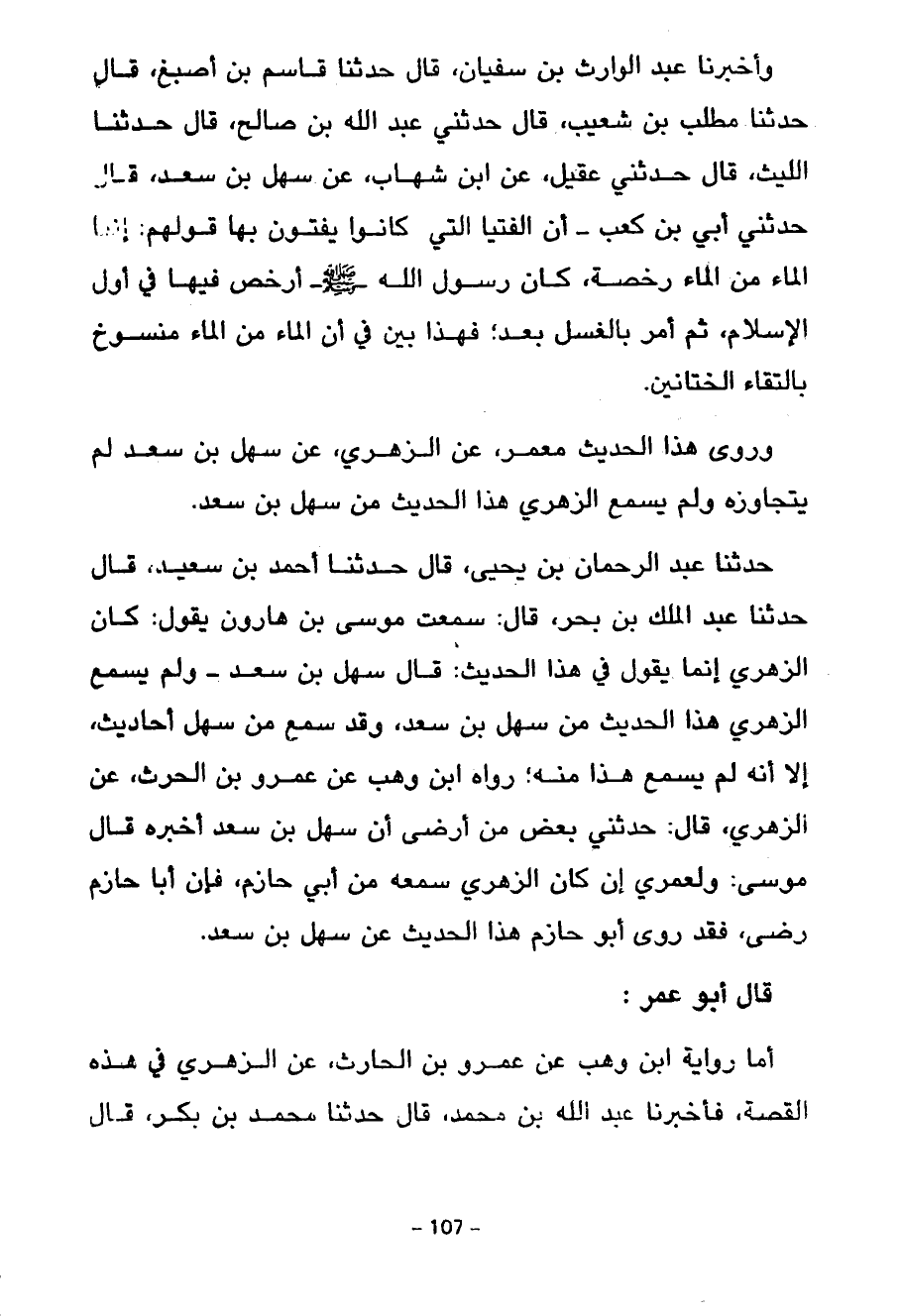 قَالَ أَبُو عُمَرَ أَمَّا رِوَايَةُ ابْنُ وَهْبٍ عَنْ عَمْرِو بْنِ الْحَرْثِ عَنْ الزُّهْرِيِّ فِي هَذِهِ الْقِصَّةِ فَأَخْبَرَنَا عَبْدُ اللَّهِ بْنُ مُحَمَّدٍ قَالَ حَدَّثَنَا مُحَمَّدُ بْنُ بَكْرٍ قَالَ