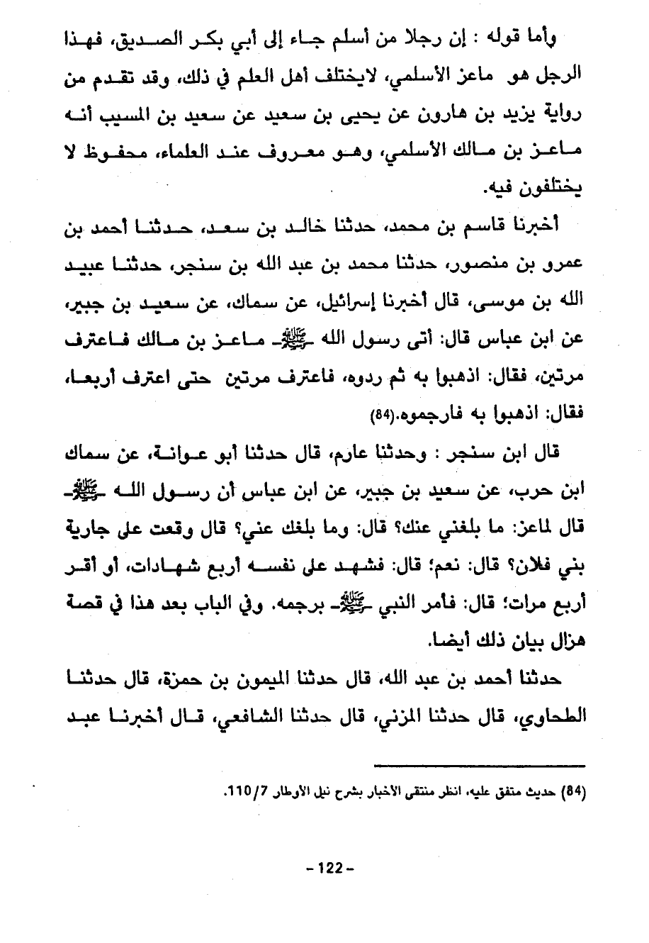 وَأَمَّا قَوْلُهُ إِنَّ رَجُلًا مِنْ أَسَلَمَ جَاءَ إِلَى أَبِي بَكْرٍ الصِّدِّيقِ فَهَذَا الرَّجُلُ هُوَ مَاعِزٌ الْأَسْلَمِيُّ لَا يَخْتَلِفُ أَهْلُ الْعِلْمِ فِي ذَلِكَ وَقَدْ تَقَدَّمَ مِنْ رِوَايَةِ يَزِيدُ بْنُ هَارُونَ عَنْ يَحْيَى بْنِ سَعِيدٍ عَنْ سَعِيدِ بْنِ الْمُسَيَّبِ أَنَّهُ مَاعِزُ بْنُ مَالِكٍ الْأَسْلَمِيُّ وَهُوَ مَعْرُوفٌ عِنْدَ الْعُلَمَاءِ مَحْفُوظٌ لَا يَخْتَلِفُونَ فِيهِ