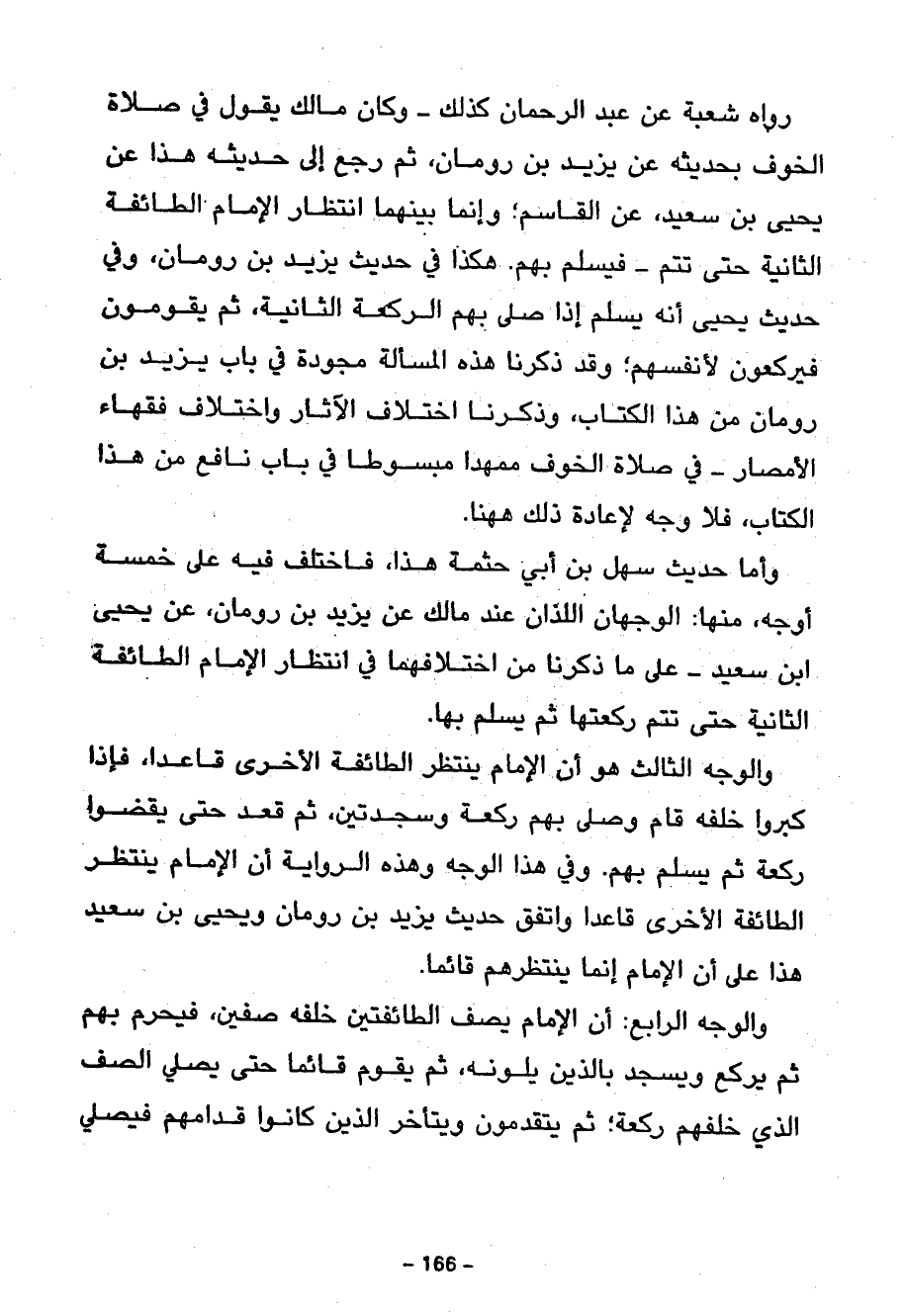 وَفِي هَذَا الْوَجْهِ وَهَذِهِ الرِّوَايَةِ أَنَّ الْإِمَامَ يَنْتَظِرُ الطَّائِفَةَ الْأُخْرَى قَاعِدًا وَاتَّفَقَ حَدِيثُ يَزِيدَ بْنِ رُومَانَ وَيَحْيَى بْنِ سَعِيدٍ هَذَا عَلَى أَنَّ الْإِمَامَ إِنَّمَا يَنْتَظِرُهُمْ قَائِمًا