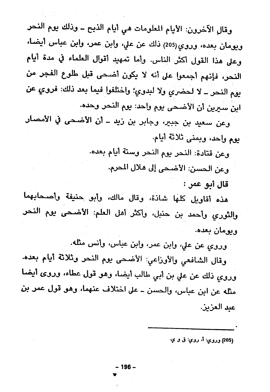 قَالَ أَبُو عُمَرَ هَذِهِ أَقَاوِيلُ كُلُّهَا شَاذَّةٌ وَقَالَ مَالِكٌ وَأَبُو حَنِيفَةَ وَأَصْحَابُهُمَا وَالثَّوْرِيُّ وَأَحْمَدُ بْنُ حَنْبَلٍ وَأَكْثَرُ أَهْلِ الْعِلْمِ الْأَضْحَى يَوْمُ النَّحْرِ وَيَوْمَانِ بَعْدَهُ