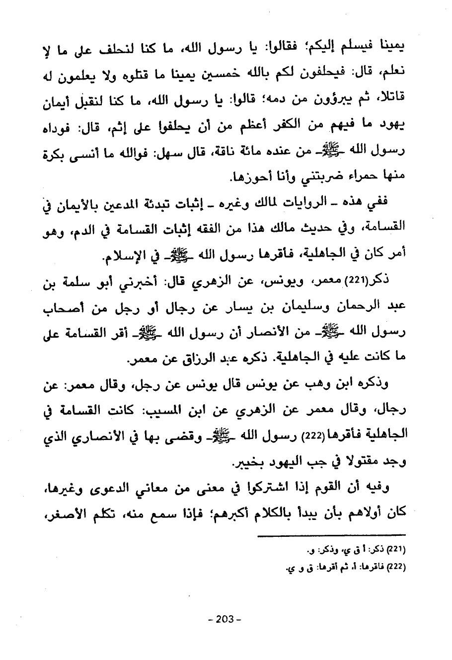 فَفِي هَذِهِ الرِّوَايَاتِ لِمَالِكٍ وَغَيْرِهِ إِثْبَاتُ تَبْدِئَةِ الْمُدَّعِينَ بِالْأَيْمَانِ فِي الْقَسَامَةِ وَفِي حَدِيثِ مَالِكٍ هَذَا مِنَ الْفِقْهِ إِثْبَاتُ الْقَسَامَةِ فِي الدَّمِ وَهُوَ أَمْرٌ كَانَ فِي الْجَاهِلِيَّةِ فَأَقَرَّهَا رسول الله فِي الْإِسْلَامِ