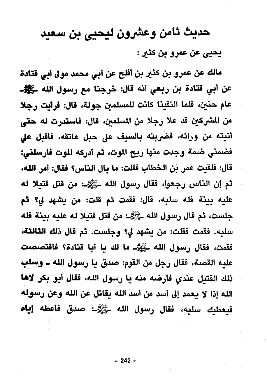 حَدِيثٌ ثَامِنٌ وَعِشْرُونَ لِيَحْيَى بْنِ سَعِيدٍ يَحْيَى عَنْ عَمْرِو بْنِ كَثِيرٍ
