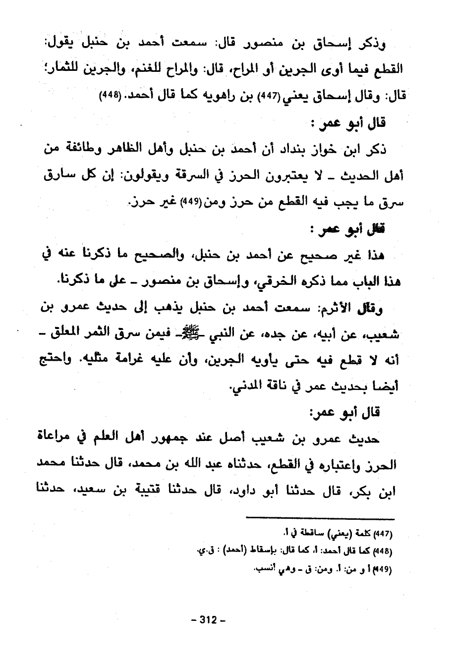 قَالَ أَبُو عُمَرَ هَذَا غَيْرُ صَحِيحٍ عَنْ أَحْمَدَ بْنَ حَنْبَلٍ وَالصَّحِيحُ مَا ذَكَرْنَا عَنْهُ فِي هَذَا الْبَابِ مِمَّا ذَكَرَهُ الْخِرَقِيُّ وَإِسْحَاقُ بْنُ مَنْصُورٍ عَلَى مَا ذَكَرْنَا