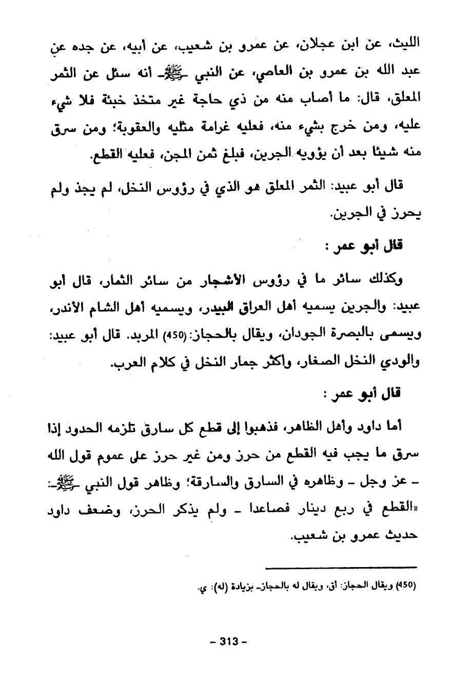قَالَ أَبُو عُمَرَ أَمَّا دَاوُدُ وَأَهْلُ الظَّاهِرِ فَذَهَبُوا إِلَى قَطْعِ كُلِّ سَارِقٍ تَلْزَمُهُ الْحُدُودُ إِذَا سَرَقَ مَا يَجِبُ فِيهِ الْقَطْعُ مِنْ حِرْزٍ ومن غَيْرِ حِرْزٍ عَلَى عُمُومِ قَوْلِ اللَّهِ عَزَّ وجل وظاهره في السارق وَالسَّارِقَةُ وَظَاهِرُ قَوْلِ النَّبِيِّ الْقَطْعُ فِي رُبْعِ دِينَارٍ فَصَاعِدًا وَلَمْ يَذْكُرِ الْحِرْزَ وَضَعَّفَ دَاوُدُ حَدِيثَ عَمْرِو بْنِ شُعَيْبٍ