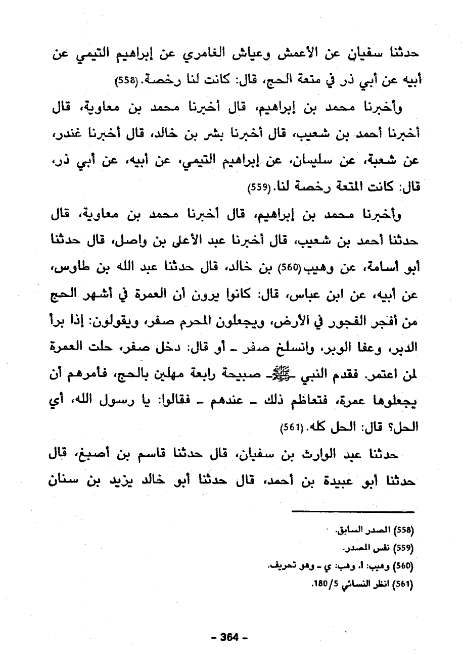 وَأَخْبَرَنَا مُحَمَّدُ بْنُ إِبْرَاهِيمَ قَالَ أَخْبَرَنَا مُحَمَّدُ بْنُ مُعَاوِيَةَ قَالَ حَدَّثَنَا أَحْمَدُ بْنُ شُعَيْبٍ قَالَ أَخْبَرَنَا عَبْدُ الْأَعْلَى بْنُ وَاصِلٍ قَالَ حَدَّثَنَا أَبُو أُسَامَةَ عَنْ وَهِيبُ بْنُ خَالِدٍ قَالَ حَدَّثَنَا عَبْدُ اللَّهِ بْنُ طَاوُسٍ عَنْ أَبِيهِ عَنِ ابْنِ عَبَّاسٍ قَالَ كَانُوا يَرَوْنَ أَنَّ الْعُمْرَةَ فِي أَشْهُرِ الْحَجِّ مِنْ أَفْجَرِ الْفُجُورِ فِي الْأَرْضِ ويجعلون المحرم صفر وَيَقُولُونَ إِذَا بَرَأَ الدُّبُرْ وَعَفَا الْوَبَرْ وَانْسَلَخَ صَفَرْ أَوْ قَالَ دَخَلَ صَفَرْ حَلَّتِ الْعُمْرَةُ لِمَنِ اعْتَمَرْ