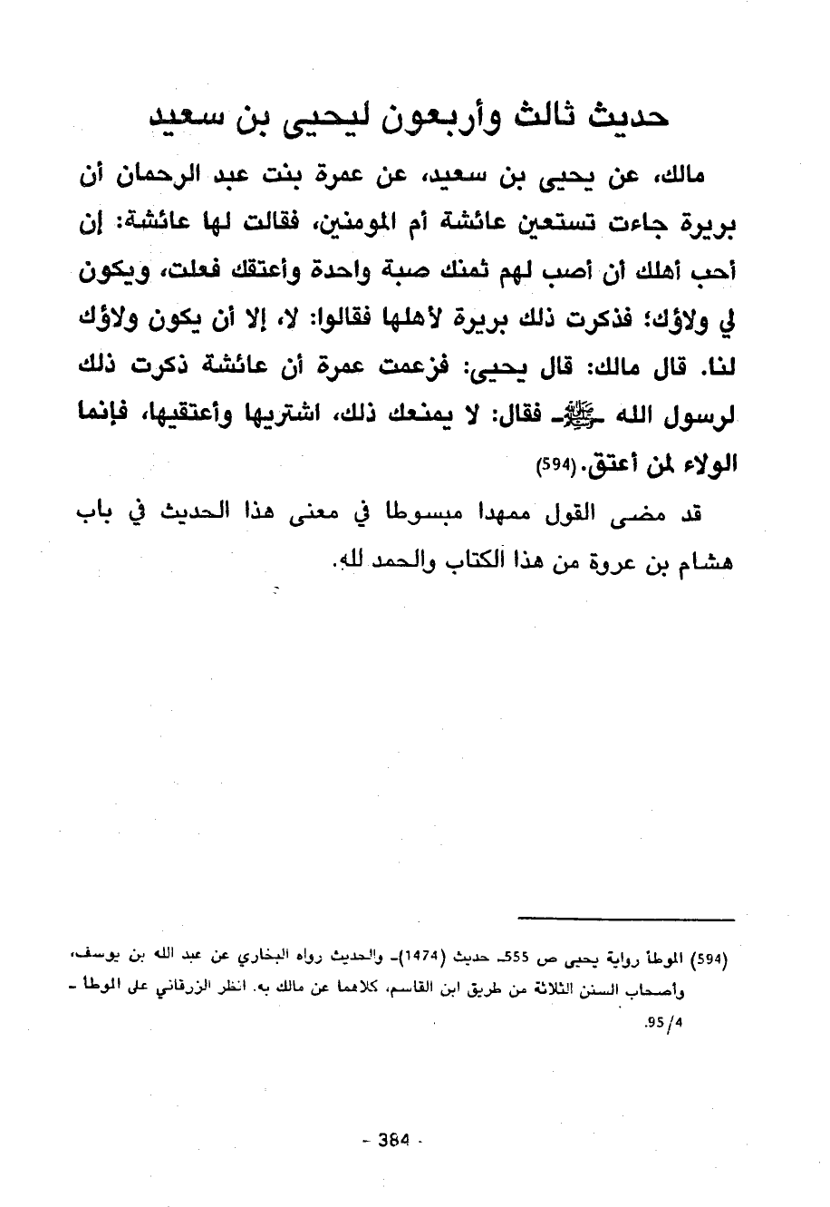 حَدِيثٌ ثَالِثٌ وَأَرْبَعُونَ لِيَحْيَى بْنِ سَعِيدٍ