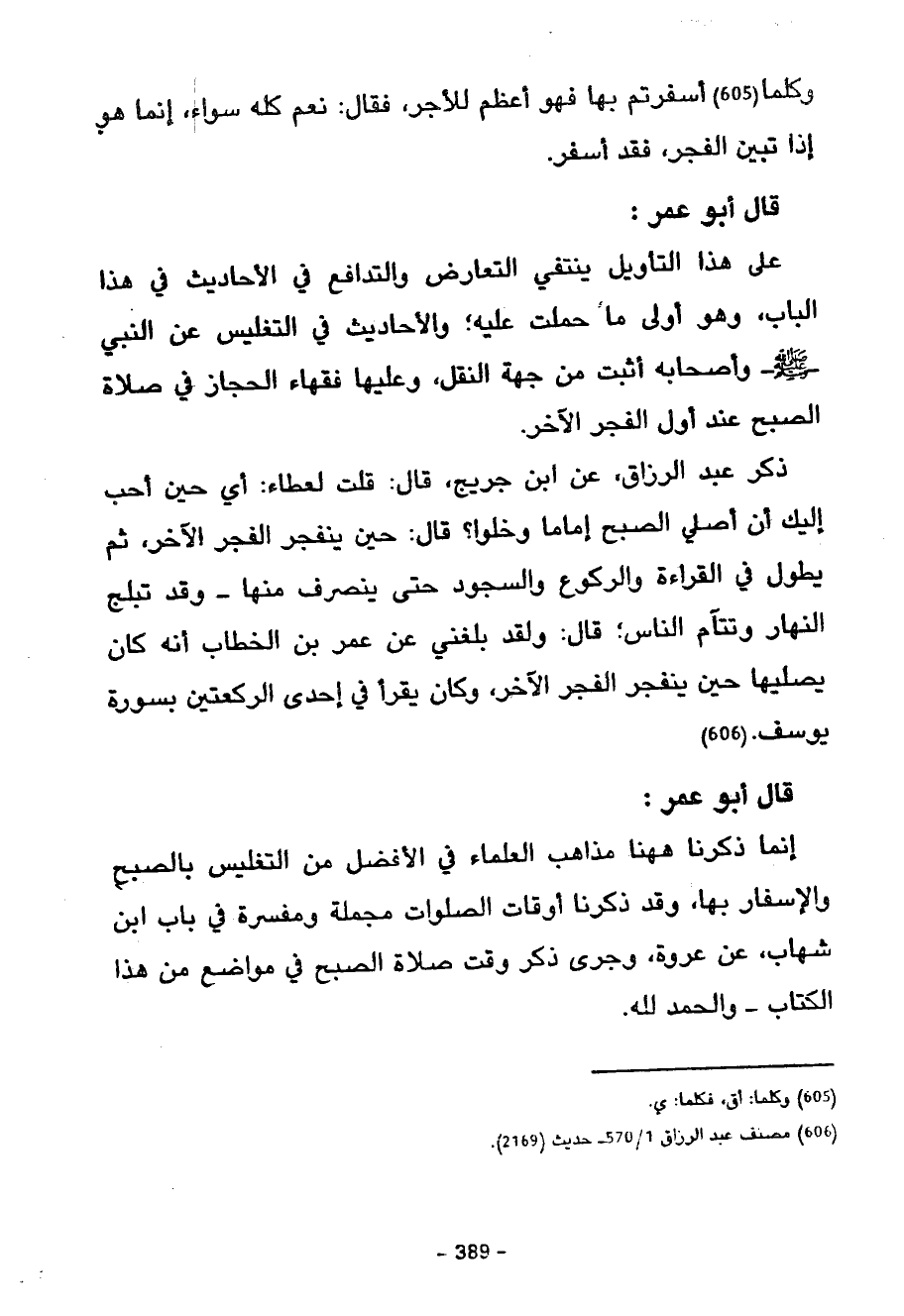 قَالَ أبو عمر إنما ذكرنا ههنا مَذَاهِبَ الْعُلَمَاءِ فِي الْأَفْضَلِ مِنَ التَّغْلِيسِ بِالصُّبْحِ وَالْإِسْفَارِ بِهَا وَقَدْ ذَكَرْنَا أَوْقَاتَ الصَّلَوَاتِ مُجْمَلَةً وَمُفَسَّرَةً فِي بَابِ ابْنِ شِهَابٍ عَنْ عُرْوَةَ وَجَرَى ذِكْرُ وَقْتِ صَلَاةِ الصُّبْحِ فِي مَوَاضِعَ مِنْ هَذَا الْكِتَابِ وَالْحَمْدُ لِلَّهِ