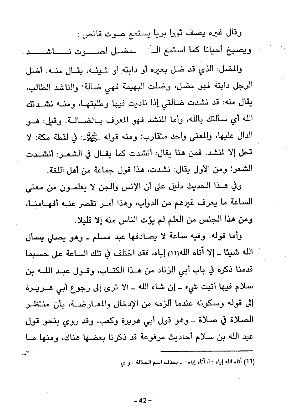 وَقَالَ غَيْرُهُ يَصِفُ ثَوْرًا بَرِّيًّا يَسْتَمِعُ صَوَتَ قَانِصٍ وَيُصِيخُ أَحْيَانًا كَمَا اسْتَمَعَ الْ مُضِلُّ لصوت ناشد والمضل الذي وقد ضل بغيره أَوْ دَابَّتُهُ أَوْ شَيْئُهُ يُقَالُ مِنْهُ أَضَلَّ الرَّجُلُ دَابَّتَهُ فَهُوَ مُضِلٌّ وَضَلَّتِ الْبَهِيمَةُ فَهِيَ ضَالَّةٌ وَالنَّاشِدُ الطَّالِبُ يُقَالُ مِنْهُ قَدْ نَشَدْتُ ضَالَّتِي إِذَا نَادَيْتُ فِيهَا وَطَلَبْتُهَا وَمِنْهُ نَشَدْتُكَ الله أب سَأَلْتُكُ بِاللَّهِ وَأَمَّا الْمُنْشِدُ فَهُوَ الْمُعَرِّفُ بِالضَّالَّةِ