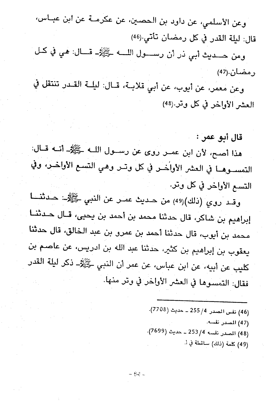 وَعَنِ الْأَسْلَمِيُّ عَنْ دَاوُدُ بْنُ الْحُصَيْنِ عَنْ عِكْرِمَةَ عَنِ ابْنِ عَبَّاسٍ قَالَ لَيْلَةُ الْقَدْرِ فِي كُلِّ رَمَضَانَ تَأْتِي