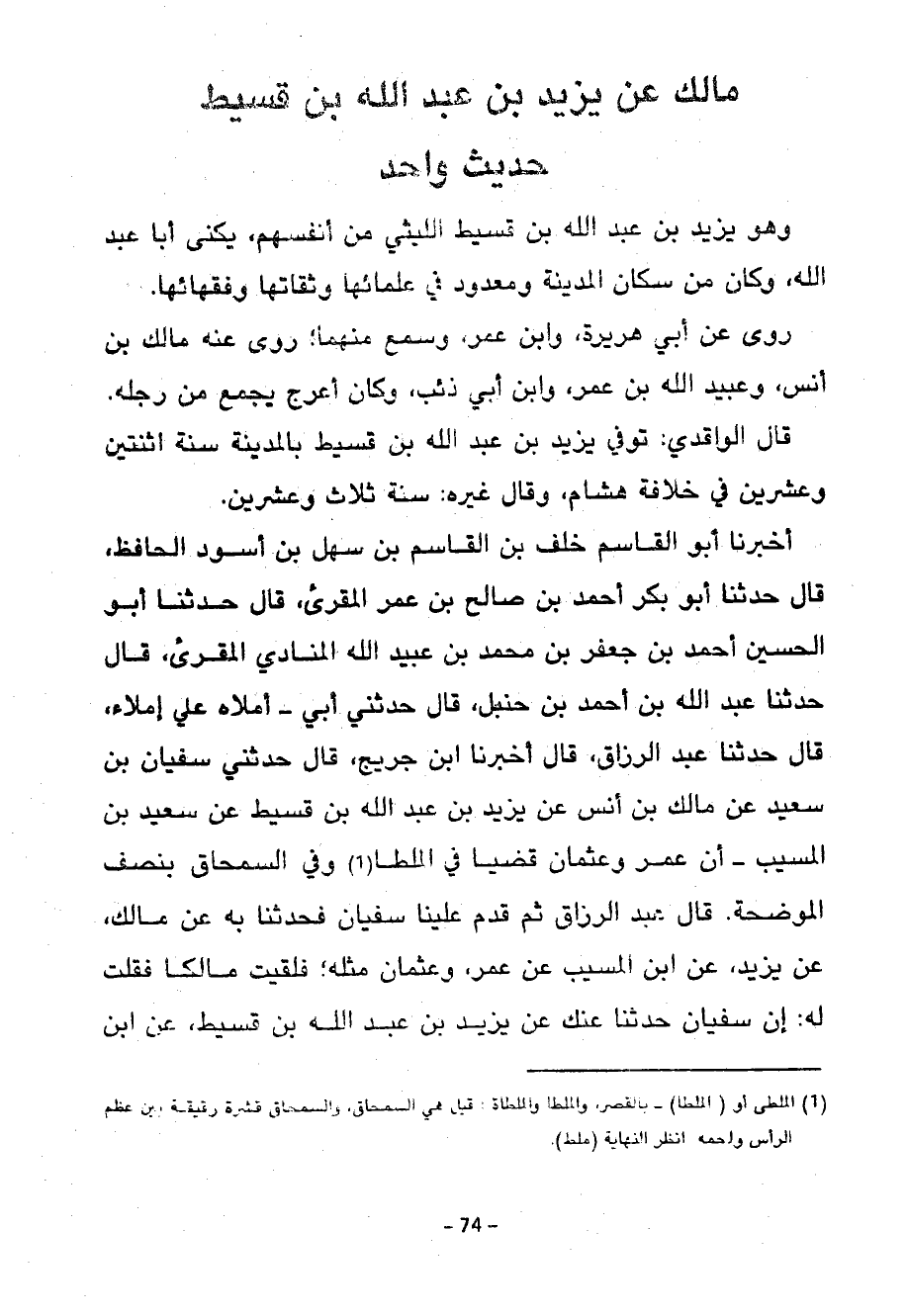 مالك عَنْ يَزِيدَ بْنِ عَبْدِ اللَّهِ بْنِ قُسَيْطٍ حَدِيثٌ وَاحِدٌ وَهُوَ يَزِيدُ بْنُ عَبْدِ اللَّهِ بْنِ قُسَيْطٍ اللَّيْثِيُّ مِنْ أَنْفُسِهِمْ يُكَنَّى أَبَا عَبْدِ اللَّهِ وكان من سكان مو الْمَدِينَةِ وَمَعْدُودٌ فِي عُلَمَائِهَا وَثِقَاتِهَا وَفُقَهَائِهَا