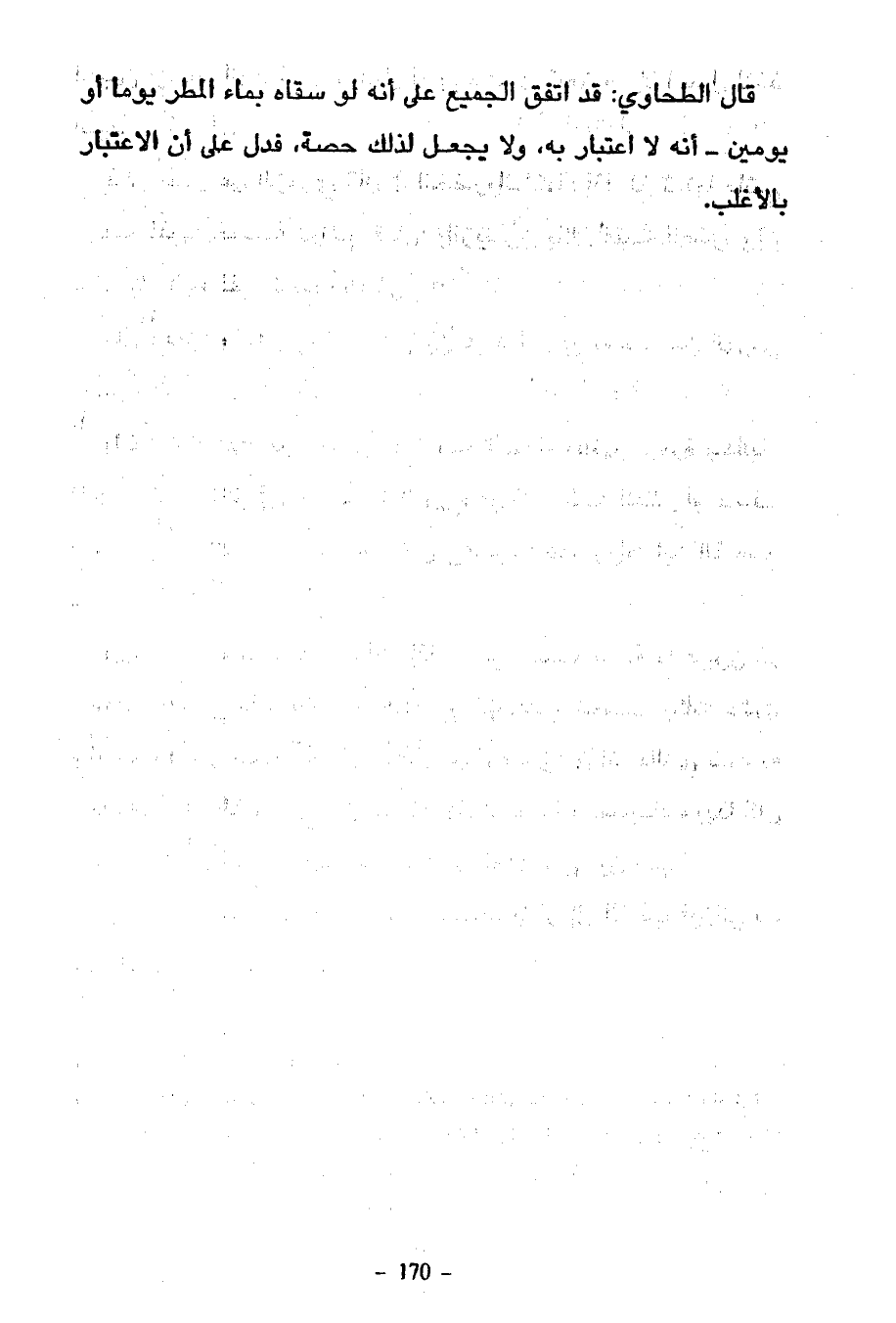 قَالَ الطَّحَاوِيُّ قَدِ اتَّفَقَ الْجَمِيعُ عَلَى أَنَّهُ لو سقاه بماء المطر يوما أبو يومين أنهلا اعْتِبَارَ بِهِ وَلَا يَجْعَلُ لِذَلِكَ حِصَّةً فَدَلَّ عَلَى أَنَّ الِاعْتِبَارَ بِالْأَغْلَبِ