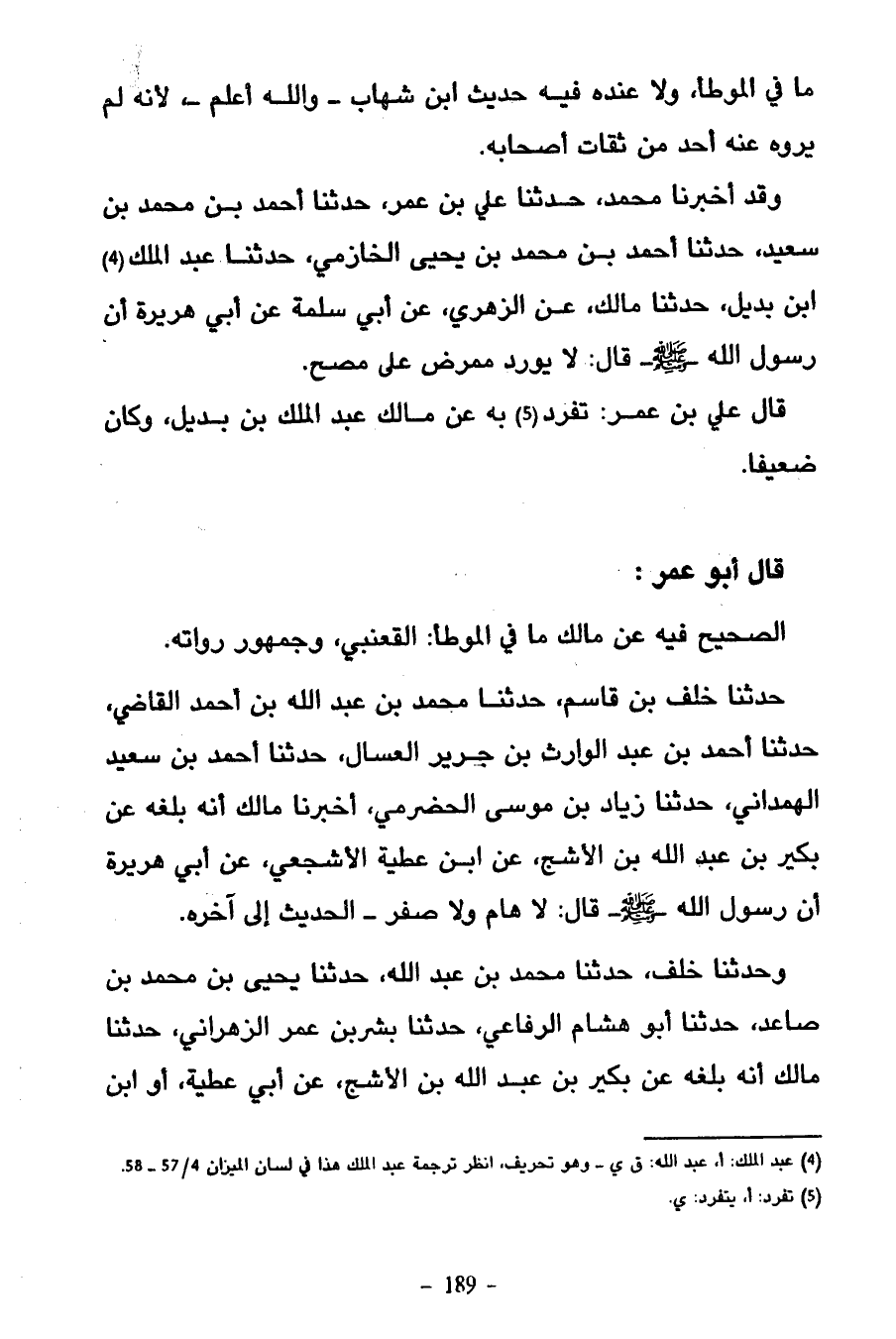 قَالَ أَبُو عُمَرَ الصَّحِيحُ فِيهِ عَنْ مَالِكٍ مَا فِي الْمُوَطَّأِ الْقَعْنَبِيُّ وَجُمْهُورُ رُوَاتِهِ
