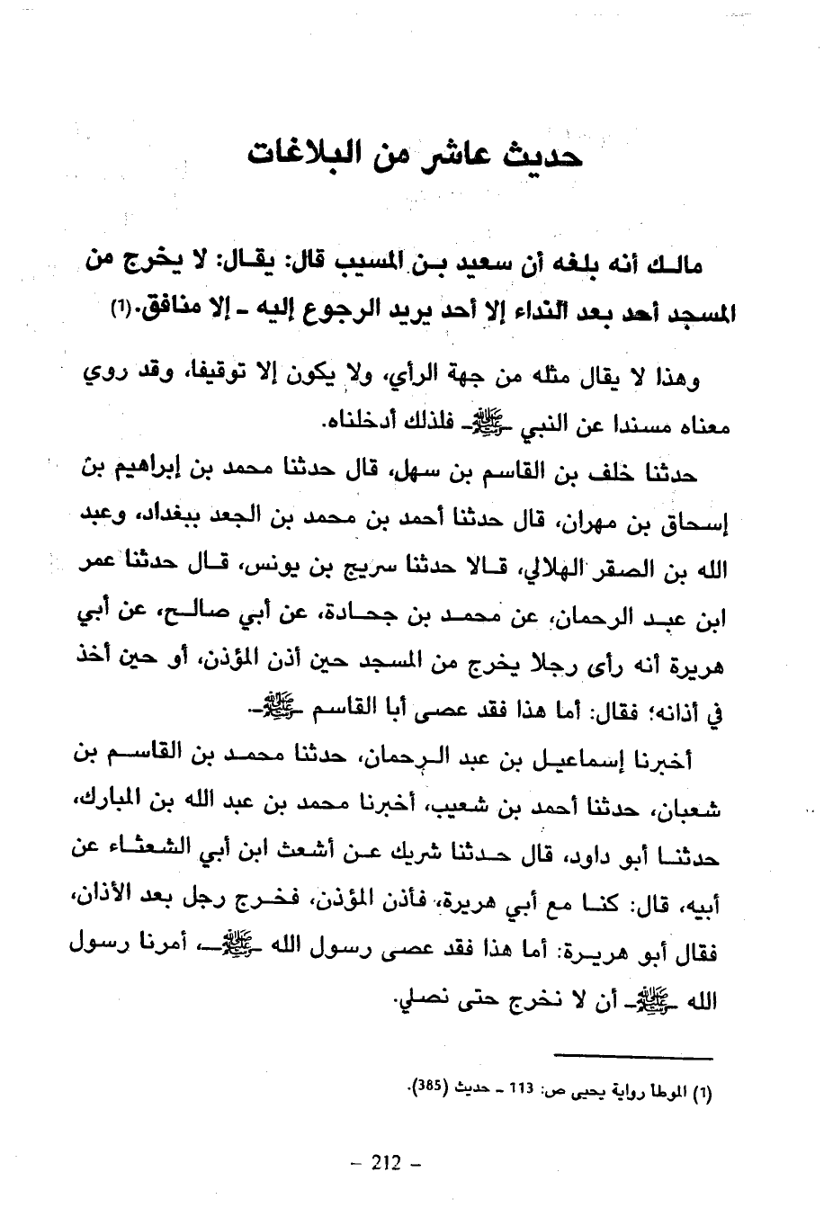 997 - مَالِكٌ أَنَّهُ بَلَغَهُ أَنَّ سَعِيدَ بْنَ الْمُسَيَّبِ قَالَ يُقَالُ لَا يَخْرُجُ مِنَ الْمَسْجِدِ أَحَدٌ بَعْدَ النِّدَاءِ إِلَّا أَحَدٌ يُرِيدُ الرُّجُوعَ إِلَيْهِ إِلَّا مُنَافِقٌ
