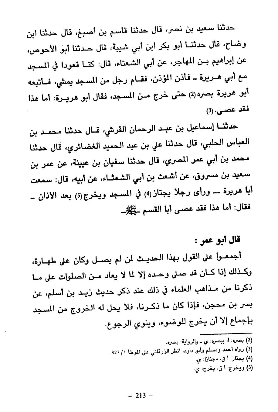 حَدَّثَنَا سَعِيدُ بْنُ نَصْرٍ قَالَ حَدَّثَنَا قَاسِمُ بْنُ أَصْبَغَ قَالَ حَدَّثَنَا ابْنُ وَضَّاحٍ قَالَ حدثنا أبو بكر ابن أَبِي شَيْبَةَ قَالَ حَدَّثَنَا أَبُو الْأَحْوَصِ عَنْ إِبْرَاهِيمَ بْنِ الْمُهَاجِرِ عَنْ أَبِي الشَّعْثَاءِ قَالَ كُنَّا قُعُودًا فِي الْمَسْجِدِ مَعَ أَبِي هُرَيْرَةَ فَأَذَّنَ الْمُؤَذِّنُ فَقَامَ رَجُلٌ مِنَ الْمَسْجِدِ يَمْشِي فَأَتْبَعَهُ أَبُو هُرَيْرَةَ بَصَرَهُ حَتَّى خَرَجَ مِنَ الْمَسْجِدِ فَقَالَ أَبُو هُرَيْرَةَ أَمَّا هَذَا فَقَدَ عَصَى