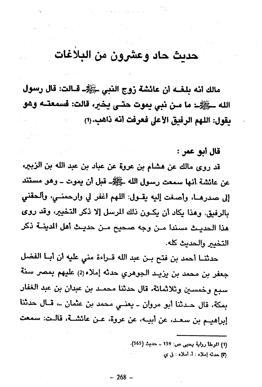 18018018 018 - مَالِكٌ أَنَّهُ بلغه أن عَائِشَةَ قَالَتْ قَالَ رَسُولُ اللَّهِ صَلَّى اللَّهُ عَلَيْهِ وَسَلَّمَ مَا مِنْ نَبِيٍّ يَمُوتُ حَتَّى يُخَيَّرَ قَالَتْ فَسَمِعْتُهُ يَقُولُ اللَّهُمَّ الرَّفِيقَ الْأَعْلَى فَعَرَفْتُ أَنَّهُ ذَاهِبٌ (16 46)