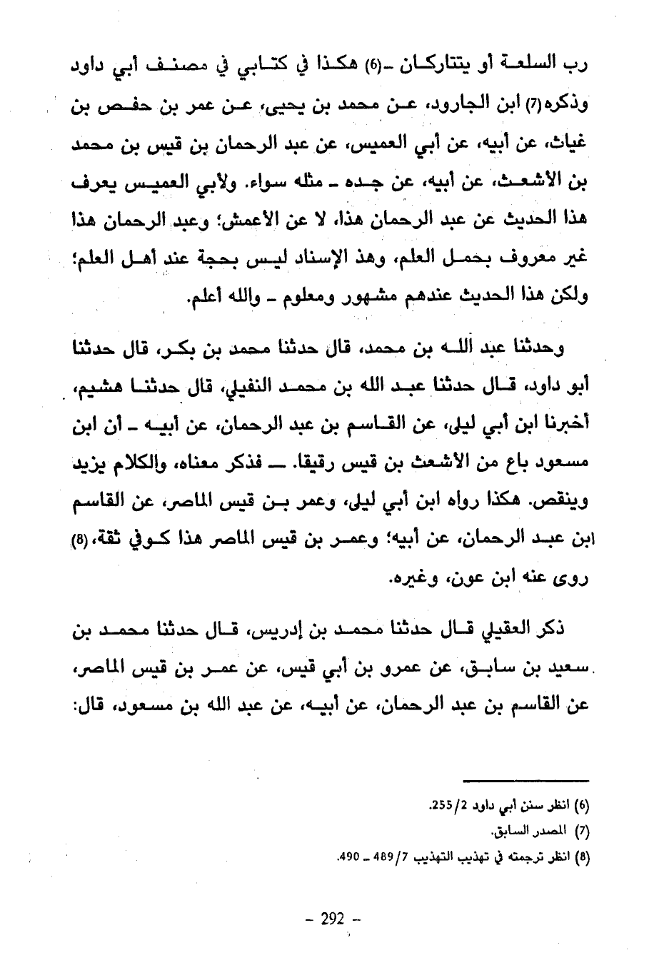 وحدثنا عبد الله بن ممد قَالَ حَدَّثَنَا مُحَمَّدُ بْنُ بَكْرٍ قَالَ حَدَّثَنَا أبو داودقال حَدَّثَنَا عَبْدُ اللَّهِ بْنُ مُحَمَّدٍ النُّفَيْلِيُّ قَالَ حَدَّثَنَا هُشَيْمٌ أَخْبَرَنَا ابْنُ أَبِي لَيْلَى عَنِ الْقَاسِمِ بْنِ عَبْدِ الرَّحْمَنِ عَنْ أَبِيهِ أَنَّ ابْنَ مَسْعُودٍ بَاعَ مِنَ الْأَشْعَثِ بْنِ قَيْسٍ رقيا