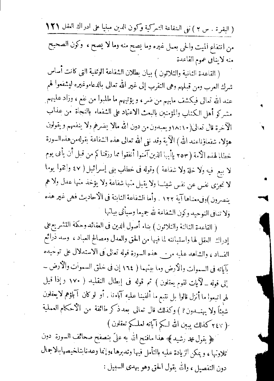 وَقَدْ صَرَّحَ هُنَا بِأَنَّ الْغِشَاوَةَ عَلَى بَصَرِهِ مِنْ جَعْلِ اللهِ تَعَالَى، وَلَمْ يُصَرِّحْ فِي آيَةِ الْبَقَرَةِ الَّتِي نُفَسِّرُهَا، وَالْمَعْنَى وَاحِدٌ، وَلِشَيْخِنَا الْأُسْتَاذِ الْإِمَامِ دَقَائِقُ فِي هَذِهِ التَّعْبِيرَاتِ ادَّخَرَهَا اللهُ تَعَالَى لَهُ وَهِيَ مَعَ هَذَا تُغْنِيكَ عَنْ تَمَارِي الْأَشْعَرِيَّةِ وَالْمُعْتَزِلَةِ فِي الْآيَاتِ تَعَصُّبًا لِمَذَاهِبِهِمْ وَقَالَ: