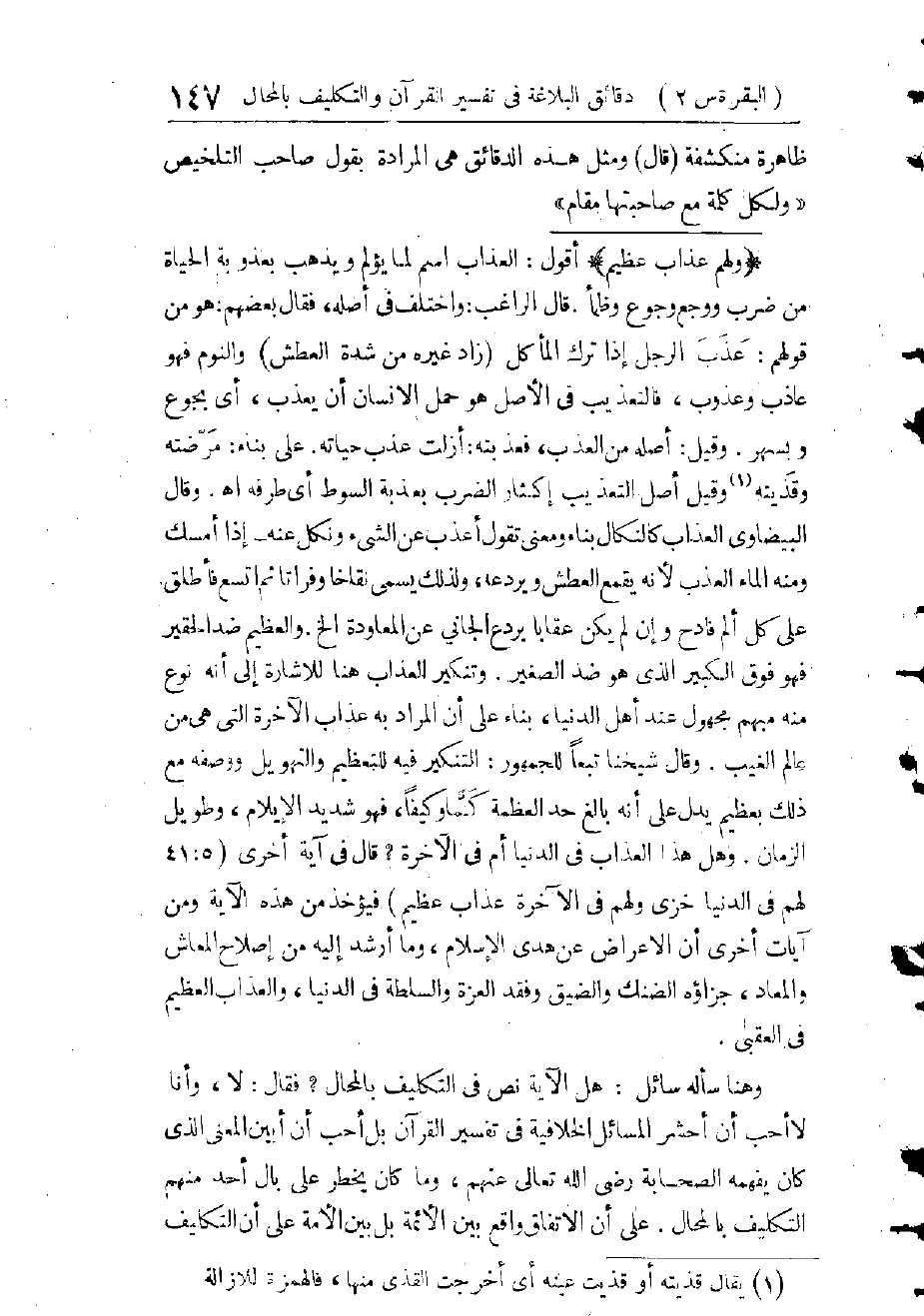 وَقَالَ تَعَالَى فِي أَصْحَابِ الصَّيِّبِ: (يَجْعَلُونَ أَصَابِعَهُمْ فِي آذَانِهِمْ مِنَ الصَّوَاعِقِ حَذَرَ الْمَوْتِ) الصَّاعِقَةُ هِيَ مَا كَانَ يَعْرِفُهُ الْعَرَبُ وَيَعْرِفُهُ كُلُّ وَاحِدٍ، وَهِيَ مَا يَنْزِلُ فِي أَثْنَاءِ الْمَطَرِ وَالْبَرْقِ وَالرَّعْدِ فَيَصْعَقُ مَا يَنْزِلُ بِهِ، بِأَنْ يَهْلِكَ أَوْ يَلْحَقَهُ ضَرَرٌ، وَمَا تَفْسِيرُنَا لِلْبَرْقِ وَالرَّعْدِ وَالصَّاعِقَةِ مَعَ كَوْنِهَا مَعْرُوفَةً لِكُلِّ النَّاسِ إِلَّا لِأَنَّ الْمُفَسِّرِينَ صَرَفُوا أَفْهَامَهُمْ عَنِ الْمَعْرُوفِ إِلَى غَيْرِهِ، كَمَا حُكِيَ عَنْ (أَرِسْطُو) حَكِيمِ قُدَمَاءِ الْيُونَانِ أَنَّ تَلَامِيذَهُ سَأَلُوهُ عَنْ تَعْرِيفِ الْحَرَكَةِ، فَقَامَ وَمَشَى، وَمَا أَنْطَقَهُمْ بِالسُّؤَالِ عَنْهَا عَلَى بَدَاهَتِهَا إِلَّا أَنَّهُمُ اعْتَادُوا أَنْ يَسْمَعُوا مِنَ الْفَلَاسِفَةِ أَقْوَالًا فِي الْأُمُورِ الْجَلِيَّةِ تَجْعَلُهَا غَامِضَةً خَفِيَّةً.