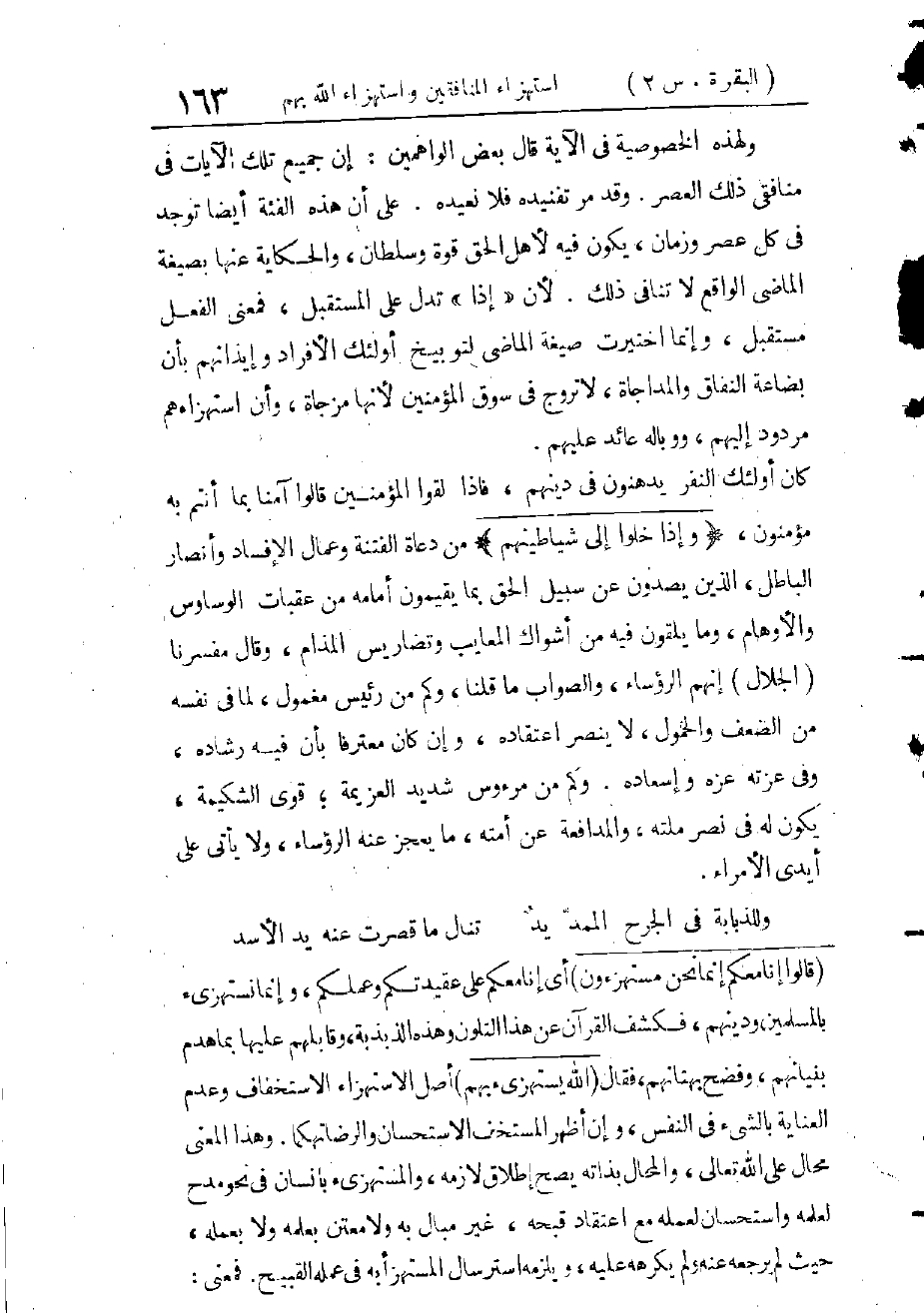 مِنْ مَصَاقِعِهِمْ إِلَى الْمُنَاهَضَةِ (أَقُولُ) بَلْ تَوَاتَرَ عَنْهُمْ مَا كَانَ ((مِنَ الْإِعْرَاضِ عَنِ الْمُعَارَضَةِ بِأَسَلَاتِ أَلْسِنَتِهِمْ، وَالْفَزَعِ إِلَى الْمُقَارَعَةِ بِأَسِنَّةٍ أَسَلِهِمْ)) وَسَفْكِ دِمَائِهِمْ بِأَسْيَافِهِمْ، وَتَخْرِيبِ بُيُوتِهِمْ بِأَيْدِيهِمْ، أَفَلَمْ يَكُنِ الْأَجْدَرُ بِمَدَارِهِ قُرَيْشٍ وَفُحُولِهَا، غُرَرِ بَنِي مَعَدٍّ وَحُجُولِهَا أَنْ يَجْتَمِعُوا عَلَى تَأْلِيفِ سُورَةٍ بِبَلَاغَتِهِمُ الَّتِي كَانُوا يَتَبَارَوْنَ فِيهَا بِسُوقِ عُكَاظَ وَغَيْرِهَا مِنْ مَجَامِعِ مُفَاخَرَاتِهِمْ، وَيُؤْثِرُوا هَذَا عَلَى سَوْقِ الْخَمِيسِ بَعْدَ الْخَمِيسِ مِنْ صَنَادِيدِهِمْ إِلَى يَثْرِبَ لِقِتَالِ مُحَمَّدٍ - صَلَّى اللَّهُ عَلَيْهِ وَسَلَّمَ - وَمَنْ آمَنَ بِهِ " رَضِيَ اللهُ عَنْهُ " فِي بَدْرٍ وَأُحُدٍ وَوَرَاءَ الْخَنْدَقِ لَوْ كَانَ ذَلِكَ مُسْتَطَاعًا لَهُمْ؟ وَمِثْلُ هَذَا يُقَالُ فِي الْيَهُودِ الَّذِينَ كَانُوا بِجِوَارِهِ فِي الْمَدِينَةِ فَأَمَّنَهُمْ عَلَى دِينِهِمْ وَأَمْوَالِهِمْ وَأَعْرَاضِهِمْ، فَأَبَوْا إِلَّا إِعَانَةَ مُشْرِكِي قَوْمِهِ عَلَيْهِ حَتَّى اضْطَرُّوهُ إِلَى قِتَالِهِمْ، وَإِخْرَاجِ بَقِيَّةِ السَّيْفِ مِنْ دِيَارِهِمْ، فَلَا شَكَّ أَنَّ اللهَ تَعَالَى قَدْ رَفَعَ هَذَا الْكَلَامَ إِلَى دَرَجَةٍ لَا يَرْتَقِي الْبَشَرُ إِلَيْهَا، وَهُوَ - تَعَالَى جَدُّهُ - الْعَالِمُ بِمَبْلَغِ اسْتِطَاعَتِهِمْ، وَالْمَالِكُ لِأَعِنَّةِ قُدْرَتِهِمْ.