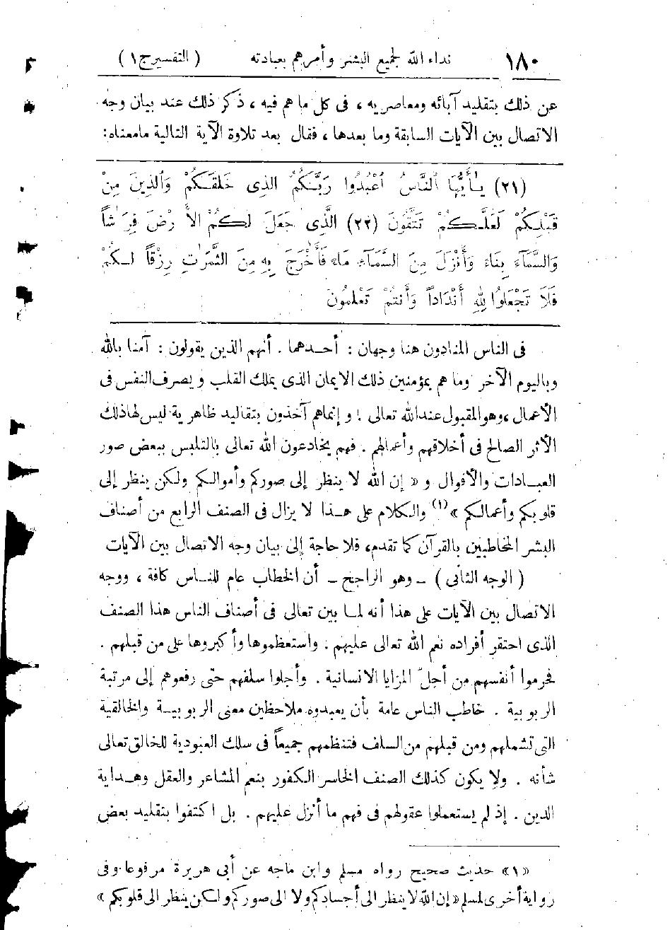 وَمَنْ قَرَأَ التَّوْرَاةَ وَالْإِنْجِيلَ ثُمَّ قَرَأَ مَا فِي الْقُرْآنِ مِنْ أَخْبَارِ الرُّسُلِ يَرَى أَمْرًا آخَرَ، يَرَى أَنَّ الْقُرْآنَ بَيَّنَ صَفْوَةَ مَا فِيهِمَا مِنْ صِحَّةِ عَقِيدَةٍ، وَمِنْ أَدَبٍ وَفَضِيلَةٍ، وَمِنْ عِبْرَةٍ وَمَوْعِظَةٍ، وَمِنْ أُسْوَةٍ بِالْأَخْيَارِ حَسَنَةٍ، وَسَكَتَ عَنْ كُلِّ مَا فِيهِمَا مِمَّا يُنَافِي ذَلِكَ وَيُخِلُّ بِهِ، أَوْ يَجْعَلُ أَفْضَلَ الْبَشَرِ قُدْوَةً سَيِّئَةً، وَصَرَّحَ بِنَقْضِ مَا طَرَأَ عَلَى أَهْلِ الْكِتَابِ مِنْ نَزَعَاتِ الشِّرْكِ وَالْوَثَنِيَّةِ، فَإِنْ فَرَضْنَا - تَنَزُّلًا - أَنَّ هَذَا مِنْ صُنْعِ مُحَمَّدِ بْنِ عَبْدِ اللهِ الْأُمِّيِّ، أَفَلَا يَكُونُ بُرْهَانًا عَلَى أَنَّهُ هُوَ فِي شَخْصِهِ أَرْقَى مِنْ جَمِيعِ الْأَنْبِيَاءِ وَالْمُرْسَلِينَ عِلْمًا وَعَقْلًا وَهِدَايَةً وَإِرْشَادًا؟ بَلَى، وَلَكِنْ كَيْفَ يُعْقَلُ حِينَئِذٍ أَنْ يَكُونُوا أَنْبِيَاءَ مُرْسَلِينَ، وَمُوحًى إِلَيْهِمْ مِنَ اللهِ أَوْ مُلْهَمِينَ؟ الْحَقُّ أَنَّ نَفْيَ نُبُوَّتِهِ - صَلَّى اللَّهُ عَلَيْهِ وَسَلَّمَ - يَقْتَضِي نَفْيَ النُّبُوَّةِ وَإِبْطَالَ الرِّسَالَةِ مِنْ أَصْلِهَا؛ لِأَنَّهَا هِيَ الَّتِي تُعْقَلُ لِذَاتِهَا وَإِنَّمَا يَظْهَرُ ثُبُوتُ غَيْرِهَا بِالتَّبَعِ لِثُبُوتِهَا، وَإِنَّنَا رَأَيْنَا بَعْضَ الْكَافِرِينَ بِالْوَحْيِ مِنَ الْبَاحِثَيْنِ الْمُسْتَقِلِّي الْفِكْرِ يُفَضِّلُونَ مُحَمَّدًا - صَلَّى اللَّهُ عَلَيْهِ وَسَلَّمَ - عَلَى جَمِيعِ الْخَلْقِ، وَمِنْهُمُ الدُّكْتُورُ شِبْلِي شُمَيْل السُّورِيُّ الْمَشْهُورُ، فَقَدْ صَرَّحَ بِذَلِكَ قَوْلًا وَكِتَابَةً وَأَثْبَتَهُ نَظْمًا وَنَثْرًا.