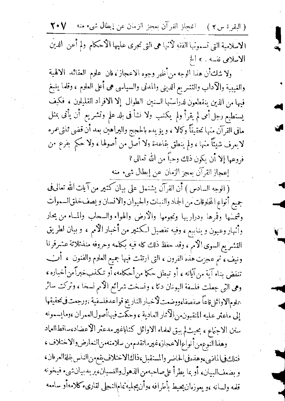 خَلَقَ السَّمَاوَاتِ وَالنُّورَ، وَلَا مَانِعَ مِنَ الْأَخْذِ بِظَاهِرِ الْآيَةِ فَإِنَّ الْخَلْقَ غَيْرُ التَّسْوِيَةِ، أَلَّا تَرَى أَنَّ الْإِنْسَانَ فِي طَوْرِ النُّطْفَةِ وَالْعَلَقَةِ يَكُونُ مَخْلُوقًا وَلَكِنَّهُ لَا يَكُونُ بَشَرًا سَوِيًّا فِي أَحْسَنِ تَقْوِيمٍ، كَمَا يَكُونُ عِنْدَ إِنْشَائِهِ خَلْقًا آخَرَ، وَسَنُبَيِّنُ - إِنْ شَاءَ اللهُ - تَعَالَى - عِنْدَ تَفْسِيرِ قَوْلِهِ - تَعَالَى -: (أَوْ لَمْ يَرَ الَّذِينَ كَفَرُوا أَنَّ السَّمَاوَاتِ وَالْأَرْضَ كَانَتَا رَتْقًا فَفَتَقْنَاهُمَا) (21: 30) أَنَّ الْعَالَمَ كَانَ شَيْئًا وَاحِدًا ثُمَّ فَصَّلَهُ اللهُ - تَعَالَى - بِالْخَلْقِ تَفْصِيلًا وَقَدَّرَهُ تَقْدِيرًا، فَلَا مَانِعَ إِذَنْ مِنْ أَنْ يَكُونَ خَلْقُ الْأَرْضِ وَمَا فِيهَا سَابِقًا عَلَى تَسْوِيَةِ السَّمَاءِ سَبْعًا، نَعَمْ إِنَّ هَذَا مِنْ أَسْرَارِ الْخِلْقَةِ الَّتِي لَا نَعْرِفُهَا، وَرُبَّمَا يُتَوَهَّمُ أَنَّ هَذِهِ الْآيَةَ تُنَاقِضُ أَوْ تُخَالِفُ قَوْلَهُ - تَعَالَى - بَعْدَ ذِكْرِ خَلْقِ السَّمَاءِ وَأَنْوَارِهَا: (وَالْأَرْضَ بَعْدَ ذَلِكَ دَحَاهَا) (79: 30) وَالْجَوَابُ عَنْهُ مِنْ وَجْهَيْنِ: (أَحَدِهِمَا) أَنَّ الْبَعْدِيَّةَ لَيْسَتْ بَعْدِيَّةَ الزَّمَانِ وَلَكِنَّهَا الْبَعْدِيَّةُ فِي الذِّكْرِ وَهِيَ مَعْرُوفَةٌ فِي كَلَامِ الْعَرَبِ وَغَيْرِهِمْ، فَلَا بَعْدَ فِي أَنْ تَقُولَ فَعَلْتُ كَذَا لِفُلَانٍ وَأَحْسَنْتُ عَلَيْهِ بِكَذَا، وَبَعْدَ ذَلِكَ سَاعَدْتُهُ فِي عَمَلِ كَذَا، كَمَا تَقُولُ: وَزِيَادَةٌ عَلَى ذَلِكَ فِي عَمَلِهِ، تُرِيدُ نَوْعًا آخَرَ مِنْ أَنْوَاعِ الْإِحْسَانِ، مِنْ غَيْرِ مُلَاحِظَةِ التَّأَخُّرِ فِي الزَّمَانِ. (ثَانِيهِمَا) أَنَّ الَّذِي كَانَ بَعْدَ خَلْقِ السَّمَاءِ هُوَ دَحْوُ الْأَرْضِ أَيْ جَعْلُهَا مُمَهَّدَةً مَدْحُوَّةً قَابِلَةً لِلسُّكْنَى وَالِاسْتِعْمَارِ لَا مُجَرَّدَ خَلْقِهَا وَتَقْدِيرِ أَقْوَاتِهَا فِيهَا، وَخَلْقُ اللهِ وَتَقْدِيرُهُ لَمْ يَنْقَطِعْ مِنَ الْأَرْضِ وَلَا يَنْقَطِعُ مِنْهَا مَا دَامَتْ، وَكَذَلِكَ يُقَالُ فِي غَيْرِهَا.