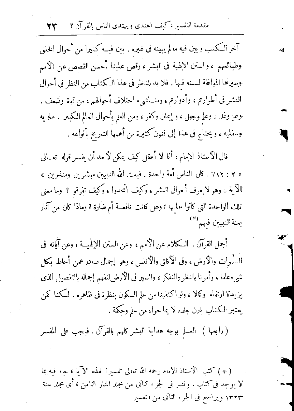(ثَانِيهِمَا) : الْهِزَّةُ وَالْحَرَكَةُ الْمَخْصُوصَةُ وَالْكَلِمَاتُ الْمَعْلُومَةُ الَّتِي تَصْدُرُ مِمَّنْ يَسْمَعُونَ الْقُرْآنَ، إِذَا كَانَ الْقَارِئُ رَخِيمَ الصَّوْتِ حَسَنَ الْأَدَاءِ عَارِفًا بِالتَّطْرِيبِ عَلَى أُصُولِ النَّغَمِ. وَالسَّبَبُ فِي هَذِهِ اللَّذَّةِ وَالنَّشْوَةِ هُوَ حُسْنُ الصَّوْتِ وَالنَّغَمِ، بَلْ أَقْوَى سَبَبٍ لِذَلِكَ هُوَ بُعْدُ السَّامِعِ عَنْ فَهْمِ الْقُرْآنِ. وَأَعْنِي بِالْفَهْمِ مَا يَكُونُ عَنْ ذَوْقٍ سَلِيمٍ تُصِيبُهُ أَسَالِيبُ الْقُرْآنِ بِعَجَائِبِهَا، وَتَمْلِكُهُ مَوَاعِظُهُ فَتَشْغَلُهُ عَمَّا بَيْنَ يَدَيْهِ مِمَّا سِوَاهُ. لَا أُرِيدُ الْفَهْمَ الْمَأْخُوذَ بِالتَّسْلِيمِ الْأَعْمَى مِنَ الْكُتُبِ أَخْذًا جَافًّا لَمْ يَصْحَبْهُ ذَلِكَ الذَّوْقُ وَمَا يَتْبَعُهُ مِنْ رِقَّةِ الشُّعُورِ وَلُطْفِ الْوِجْدَانِ، اللَّذَيْنِ هُمَا مَدَارُ التَّعَقُّلِ وَالتَّأَثُّرِ وَالْفَهْمِ وَالتَّدَبُّرِ.