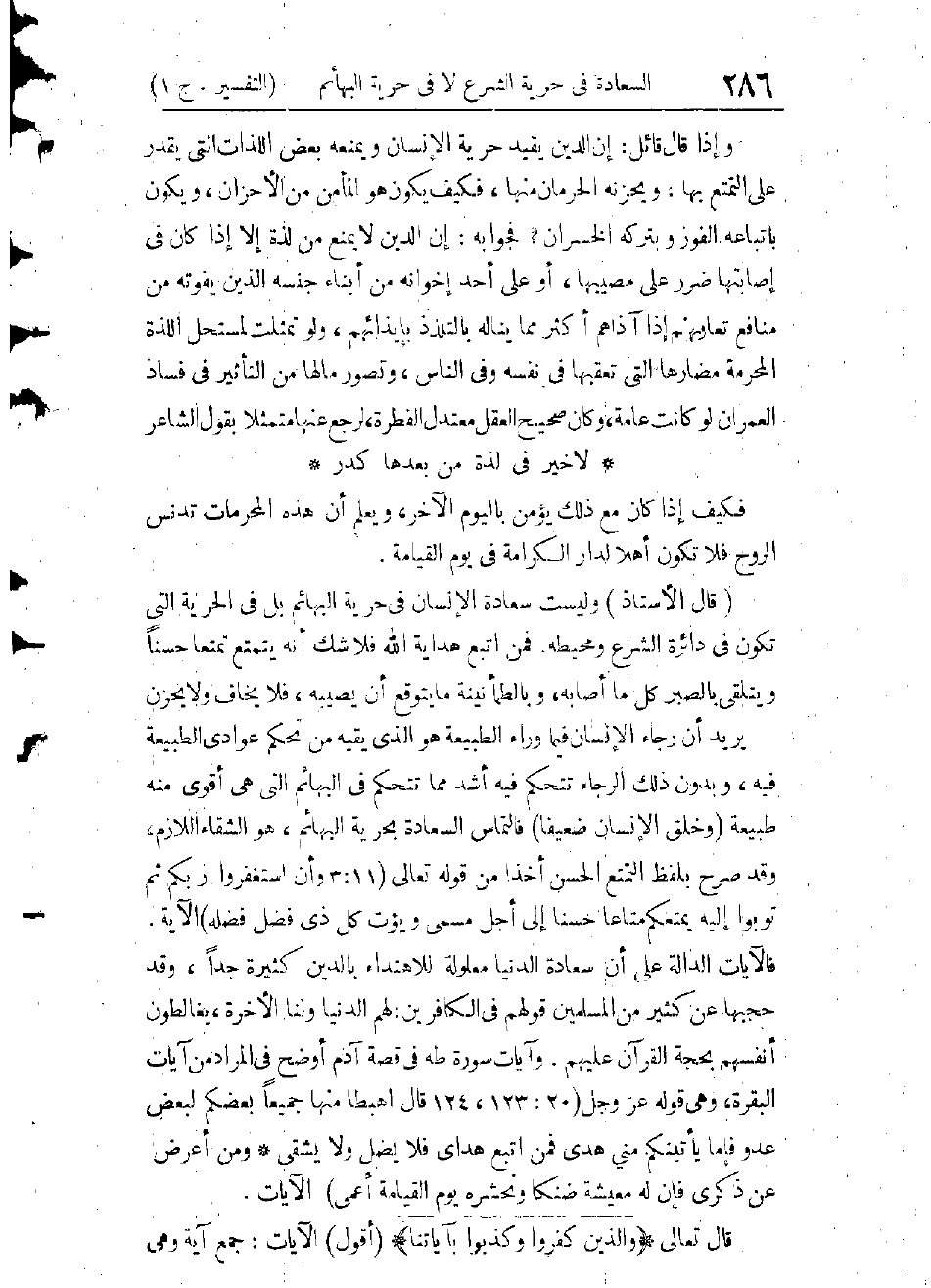 أَشْيَاءَ إِنْ تُبْدَ لَكُمْ تَسُؤْكُمْ وَإِنْ تَسْأَلُوا عَنْهَا حِينَ يُنَزَّلُ الْقُرْآنُ تُبْدَ لَكُمْ عَفَا اللهُ عَنْهَا وَاللهُ غَفُورٌ حَلِيمٌ قَدْ سَأَلَهَا قَوْمٌ مِنْ قَبْلِكُمْ ثُمَّ أَصْبَحُوا بِهَا كَافِرِينَ) (5: 101، 102) وَفِي الْحَدِيثِ الصَّحِيحِ ((وَيَكْرَهُ لَكُمْ قِيلَ وَقَالَ، وَإِضَاعَةَ الْمَالِ، وَكَثْرَةَ السُّؤَالِ)) وَقَدِ امْتَثَلَ سَلَفُنَا الْأَمْرَ فَلَمْ يُشَدِّدُوا عَلَى أَنْفُسِهِمْ فَكَانَ الدِّينُ عِنْدَهُمْ فِطْرِيًّا سَاذَجًا وَحَنِيفِيًّا سَمْحًا، وَلَكِنْ مِمَّنْ خَلَفَهُمْ مَنْ عَمَدَ إِلَى مَا عَفَا اللهُ عَنْهُ فَاسْتَخْرَجَ لَهُ أَحْكَامًا اسْتَنْبَطَهَا بِاجْتِهَادِهِ، وَأَكْثَرُوا مِنْهَا حَتَّى صَارَ الدِّينُ حِمْلًا ثَقِيلًا عَلَى الْأُمَّةِ فَسَئِمَتْهُ وَمَلَّتْ، وَأَلْقَتْهُ وَتَخَلَّتْ.