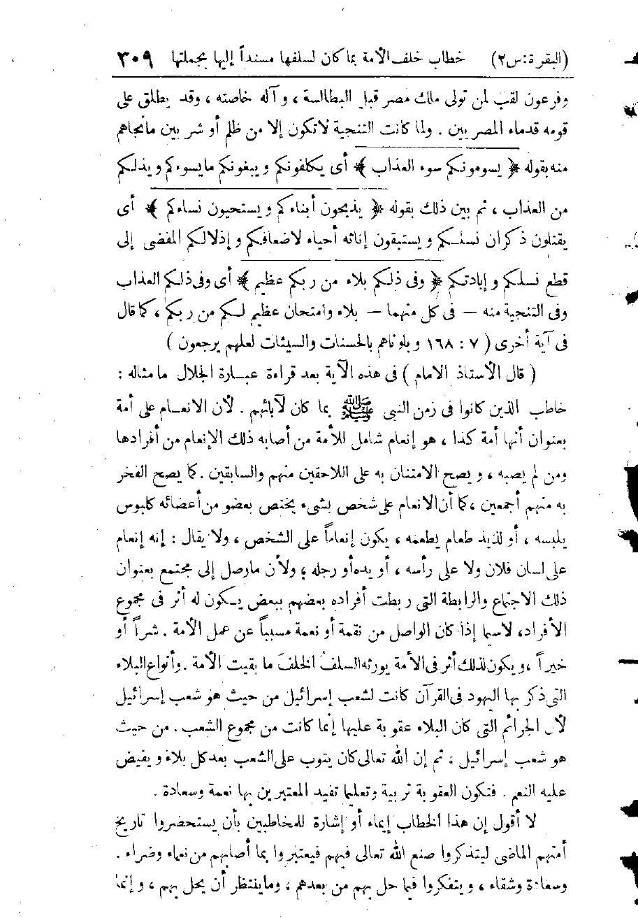 قَالَ الْأُسْتَاذُ الْإِمَامُ: فِي التَّعْبِيرِ عَنِ الْمُخَالَفَةِ وَالْمَعْصِيَةِ بِالْكُفْرِ دَلِيلٌ عَلَى مَا سَبَقَ بَيَانُهُ فِي مَعْنَى قَوْلِهِ - تَعَالَى -: (وَأَحَاطَتْ بِهِ خَطِيئَتُهُ) فَالْقُرْآنُ يُصَرِّحُ هُنَا فِي آيَاتٍ كَثِيرَةٍ بِأَنَّ مَنْ يُقْدِمُ عَلَى الذَّنْبِ لَا تَضْطَرِبُ نَفْسُهُ قَبْلَ إِصَابَتِهِ، وَلَا يَتَأَلَّمُ وَيَنْدَمُ بَعْدَ وُقُوعِهِ فَيَرْجِعُ إِلَى اللهِ - تَعَالَى - تَائِبًا، بَلْ يَسْتَرْسِلُ فِيهِ بِلَا مُبَالَاةٍ بِنَهْيِ اللهِ - تَعَالَى -