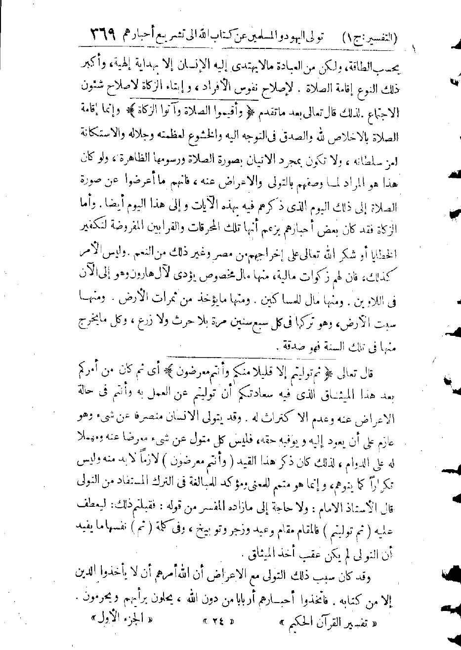 كَانَ فِي قَصَصِهِمْ عِبْرَةٌ لِأُولِي الْأَلْبَابِ) (12: 111) فَإِنَّنَا نَعْرِفُ حُكْمَ أَهْلِ الْقُرْآنِ عِنْدَهُ - تَعَالَى - مِمَّا ذَكَرَهُ عَنْ أَهْلِ التَّوْرَاةِ وَالْإِنْجِيلِ، كَمَا نَعْرِفُهُ مِثْلَ قَوْلِهِ - عَزَّ وَجَلَّ -: (أَفَلَا يَتَدَبَّرُونَ الْقُرْآنَ أَمْ عَلَى قُلُوبٍ أَقْفَالُهَا) (47: 24 (وَقَوْلِهِ: (كِتَابٌ أَنْزَلْنَاهُ إِلَيْكَ مُبَارَكٌ لِيَدَّبَّرُوا آيَاتِهِ وَلِيَتَذَكَّرَ أُولُوا الْأَلْبَابِ) (38: 29) فَكُلُّ هَذِهِ الْآيَاتِ وَالْعِبَرِ لَمْ تَحُلْ دُونَ اتِّبَاعِ هَذِهِ الْأُمَّةِ سَنَنَ مَنْ قَبْلَهَا شِبْرًا بِشِبْرٍ وَذِرَاعًا بِذِرَاعٍ كَمَا أُنْبِئَتْ لِلتَّحْذِيرِ، وَالْقُرْآنُ حُجَّةٌ عَلَيْهَا كَمَا وَرَدَ فِي الْحَدِيثِ ((وَالْقُرْآنُ حُجَّةٌ لَكَ أَوْ عَلَيْكَ)) (2) وَلَا شَكَّ أَنَّ مَنْ يَتْلُو أَلْفَاظَ الْقُرْآنِ وَهُوَ مُعْرِضٌ عَنْ هِدَايَتِهِ غَيْرُ مُعْتَبِرٍ بِوَعْدِهِ وَوَعِيدِهِ فَهُوَ كَالْمُسْتَهْزِئِ بِرَبِّهِ.