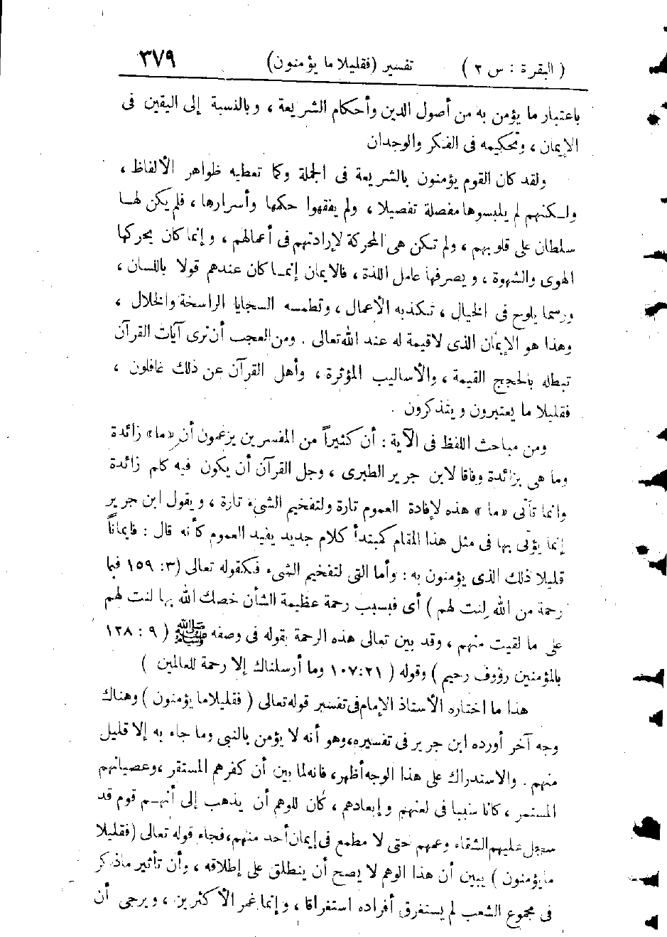 وَ (مَقَامِ) اسْمُ مَكَانٍ مِنَ الْقِيَامِ، وَقَدِ اخْتَلَفَ الْمُفَسِّرُونَ فِي مَقَامِ إِبْرَاهِيمَ، فَقَالَ بَعْضُهُمْ: إِنَّهُ الْحَجَرُ الَّذِي كَانَ يَقُومُ عَلَيْهِ عِنْدَ بِنَاءِ الْكَعْبَةِ. قَالَهُ ابْنُ عَبَّاسٍ وَجَابِرٌ وَقَتَادَةُ وَغَيْرُهُمْ وَرَوَاهُ الْبُخَارِيُّ، وَعَلَيْهِ مُفَسِّرُنَا (الْجَلَالُ) ، وَقَالَ آخَرُونَ: إِنَّهُ الْحَرَمُ كُلُّهُ وَهُوَ مَرْوِيٌّ عَنِ النَّخَعِيِّ وَمُجَاهِدٍ، وَرُوِيَ عَنِ ابْنِ عَبَّاسٍ وَعَطَاءٍ أَنَّهُ مَوَاقِفُ الْحَجِّ كُلُّهَا، وَقَالَ الشَّعْبِيُّ: إِنَّهُ عَرَفَةُ وَمُزْدَلِفَةٌ وَالْجِمَارُ. اخْتَلَفُوا أَيْضًا فِي تَفْسِيرِ الْمُصَلَّى، فَقَالَ مَنْ فَسَّرَ الْمَقَامَ بِالْحَجَرِ: إِنَّهُ مَكَانُ الصَّلَاةِ أَيْ صَلَاتُنَا الْمَخْصُوصَةُ وَعَلَيْهِ (الْجَلَالُ) وَاسْتَدَلُّوا لَهُ بِحَدِيثِ جَابِرٍ عِنْدَ مُسْلِمٍ قَالَ: ((إِنَّ رَسُولَ اللهِ - صَلَّى اللَّهُ عَلَيْهِ وَسَلَّمَ - لَمَّا فَرَغَ مِنْ طَوَافِهِ عَمَدَ إِلَى مَقَامِ إِبْرَاهِيمَ فَصَلَّى خَلْفَهُ رَكْعَتَيْنِ وَقَرَأَ الْآيَةَ)) وَذَهَبَ الْآخَرُونَ إِلَى أَنَّ الْمُرَادَ بِالْمُصَلَّى مَوْضِعُ الصَّلَاةِ بِمَعْنَاهَا اللُّغَوِيِّ الْعَامِّ، وَهُوَ الدُّعَاءُ وَالتَّوَجُّهُ إِلَى اللهِ - تَعَالَى - وَعِبَادَتُهُ مُطْلَقَةً، وَالْأُسْتَاذُ الْإِمَامُ يُرَجِّحُ قَوْلَ هَؤُلَاءِ، وَذَكَرَ مِنْ دَلِيلِهِ أَنَّ الْحِجْرَ لَا يَسَعُ لِلصَّلَاةِ الْمَخْصُوصَةِ؛ وَلِذَلِكَ قَالَ جَابِرٌ: ((إِنَّ النَّبِيَّ صَلَّى خَلْفَهُ)) فَكَيْفَ يُتَّخَذُ مِنْهُ مَحَلٌّ لِلصَّلَاةِ؟ وَأَجَابَ عَنْ حَدِيثِ مُسْلِمٍ وَحَدِيثِ أَبِي نُعَيْمٍ مَرْفُوعًا ((هَذَا مَقَامُ إِبْرَاهِيمَ))