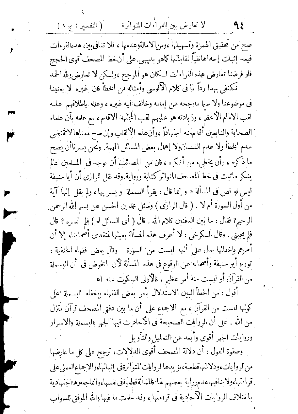 وَلَيْسَ هَذَا مِنَ الْكُفْرِ الْعَمَلِيِّ الَّذِي لَا يَخْرُجُ بِهِ صَاحِبُهُ مِنَ الْمِلَّةِ الَّذِي اسْتَشْهَدُوا لَهُ بِحَدِيثِ: ((لَا يَزْنِي الزَّانِي حِينَ يَزْنِي وَهُوَ مُؤْمِنٌ) إِلَخْ كَمَا قَالَ بَعْضُ الْعُلَمَاءِ؛ لِأَنَّ هَذَا النَّوْعَ هُوَ مِنْ عَمَلِ الْأَفْرَادِ الَّذِي تَغْلِبُهُمْ عَلَيْهِ دَاعِيَةٌ طَبِيعِيَّةٌ كَالشَّهْوَةِ وَالْغَضَبِ. وَمَا نَحْنُ فِيهِ عِبَارَةٌ عَنْ عَدَمِ الْعَمَلِ بِالشَّرْعِ الْإِلَهِيِّ لِعَدَمِ الْإِذْعَانِ لَهُ، كَاسْتِبَاحَةِ قَتْلِ فَرِيقٍ مِنَ الْأُمَّةِ وَنَفْيِ فَرِيقٍ آخَرَ مِنْ وَطَنِهِ بِمَحْضِ اتِّبَاعِ الْهَوَى وَالطَّمَعِ فِي عَرَضِ الدُّنْيَا، لَا بِجَهَالَةٍ عَارِضَةٍ يُغْلَبُ فِيهَا الْفَرْدُ عَلَى أَمْرِهِ ثُمَّ يَثُوبُ إِلَيْهِ رُشْدُهُ فَيَتُوبُ إِلَى رَبِّهِ.