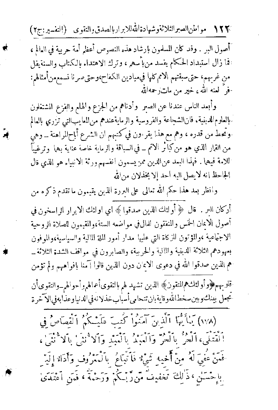 إِذَا خَرَجَ مَسِيرَةَ ثَلَاثَةِ أَيَّامٍ أَوْ ثَلَاثَةِ فَرَاسِخَ صَلَّى رَكْعَتَيْنِ)) وَيُرَجِّحُ كَوْنَ الرِّوَايَةِ ثَلَاثَةَ أَمْيَالٍ ; حَدِيثُ أَبِي سَعِيدٍ عِنْدَ سَعِيدِ بْنِ مَنْصُورٍ قَالَ: ((كَانَ رَسُولُ اللهِ - صَلَّى اللَّهُ عَلَيْهِ وَسَلَّمَ - إِذَا سَافَرَ فَرْسَخًا يَقْصُرُ الصَّلَاةَ)) وَالْفَرْسَخُ ثَلَاثَةُ أَمْيَالٍ. بَلْ رَوَى ابْنُ أَبِي شَيْبَةَ بِإِسْنَادٍ صَحِيحٍ عَنِ ابْنِ عُمَرَ أَنَّهُ كَانَ يَقْصُرُ فِي الْمِيلِ الْوَاحِدِ، وَمَا رُوِيَ فِي قَصْرِهِ صَلَّى اللَّهُ عَلَيْهِ وَسَلَّمَ فِي مَسَافَةٍ أَطْوَلَ لَا يُنَافِي هَذَا ; فَإِنَّ الْقَصْرَ فِيهَا أَوْلَى، وَلَا خِلَافَ بَيْنَ الْمُسْلِمِينَ فِي أَنَّ السَّفَرَ الَّذِي يُبَاحُ فِيهِ الْقَصْرُ يُبَاحُ فِيهِ الْفِطْرُ، وَأَمَّا الْعَاصِي بِالسَّفَرِ فَهُوَ عَلَى دُخُولِهِ فِي الْإِطْلَاقِ مِنْ جُمْلَةِ الْمُكَلَّفِينَ الْمُخَاطَبِينَ بِالشَّرِيعَةِ كُلِّهَا كَغَيْرِهِمْ كَمَا تَقَدَّمَ بَيَانُهُ فِي تَفْسِيرِ (فَمَنِ اضْطُرَّ غَيْرَ بَاغٍ وَلَا عَادٍ فَلَا إِثْمَ عَلَيْهِ) .