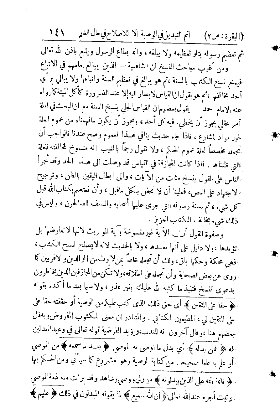(وَأَقُولُ) : إِنَّ إِقْرَارَ النَّبِيِّ - صَلَّى اللَّهُ عَلَيْهِ وَسَلَّمَ - لَهُمْ عَلَى ذَلِكَ الِاجْتِهَادِ كَانَ جَرْيًا عَلَى سُنَّتِهِ فِي إِجَازَةِ عَمَلِ كُلِّ أَحَدٍ بِاجْتِهَادِهِ فِيمَا يَحْتَمِلُ الِاجْتِهَادَ مِنَ النُّصُوصِ مِنْ غَيْرِ إِلْزَامٍ لِأَحَدٍ بِهِ، إِذْ لَمْ يَكُنْ يُلْزِمُ الْأُمَّةَ كُلَّهَا إِلَّا الْعَمَلَ بِالنَّصِّ الْقَطْعِيِّ الدَّلَالَةِ كَمَا يَأْتِي بَيَانُهُ فِي تَحْرِيمِ الْخَمْرِ وَالْمَيْسِرِ.
