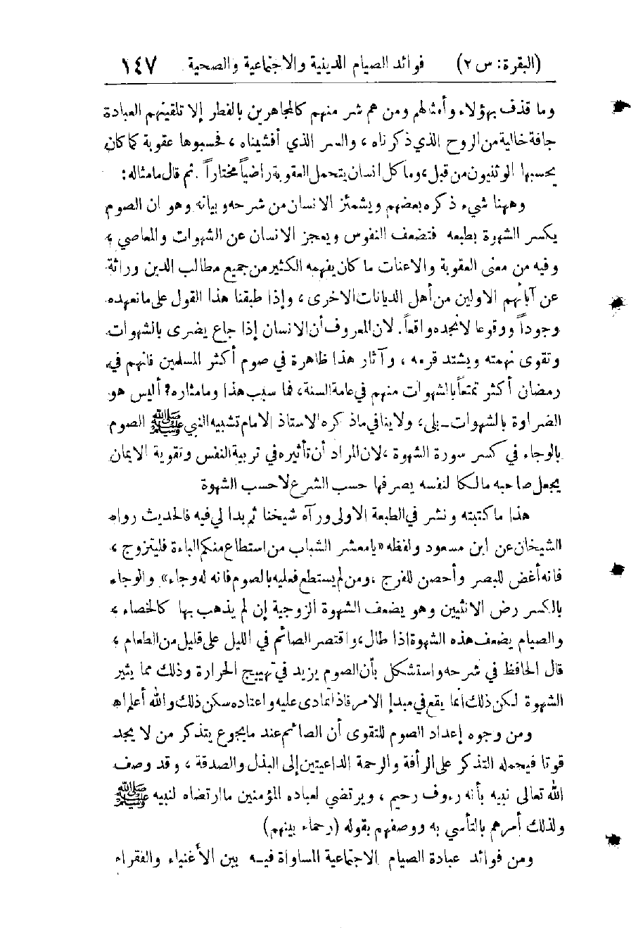 إِنَّ نَصَّ الْآيَةِ يَنُوطُ بَدْءَ الصِّيَامِ بِأَنْ يَتَبَيَّنَ لِلنَّاسِ بَيَاضُ النَّهَارِ نَاصِلًا مِنْ سَوَادِ اللَّيْلِ بِحَيْثُ يَرَاهُ كُلُّ مَنْ وَجَّهَ نَظَرَهُ إِلَى جِهَةِ الْمَشْرِقِ. وَقِيلَ: بِحَيْثُ يَرَوْنَهُ فِي طُرُقِهِمْ وَبُيُوتِهِمْ وَمَسَاجِدِهِمْ، فَفِي بَعْضِ رِوَايَاتِ حَدِيثِ الْأَذَانَيْنِ ((فَكُلُوا وَاشْرَبُوا حَتَّى تَسْمَعُوا أَذَانَ ابْنِ أُمِّ مَكْتُومٍ)) وَكَانَ رَجُلًا أَعْمَى لَا يُؤَذِّنُ حَتَّى يُقَالَ لَهُ: أَصْبَحْتَ أَصْبَحْتَ. اهـ. وَإِنَّمَا كَانَ يَقُولُ لَهُ هَذَا مَنْ يَكُونُونَ عِنْدَ الْمَسْجِدِ وَيَظْهَرُ النَّهَارُ لَهُمْ، لَا أُنَاسٌ يَرْصُدُونَ الْفَجْرَ مِنْ مَنَارَةٍ أَوْ سَطْحٍ وَيَعْتَمِدُونَ عَلَى أَوَّلِ مَا يَرَوْنَهُ فِي أُفُقِ الْمَشْرِقِ مِنِ انْتِشَارِ الضَّوْءِ الْمُسْتَطِيلِ الَّذِي يُسَمَّى