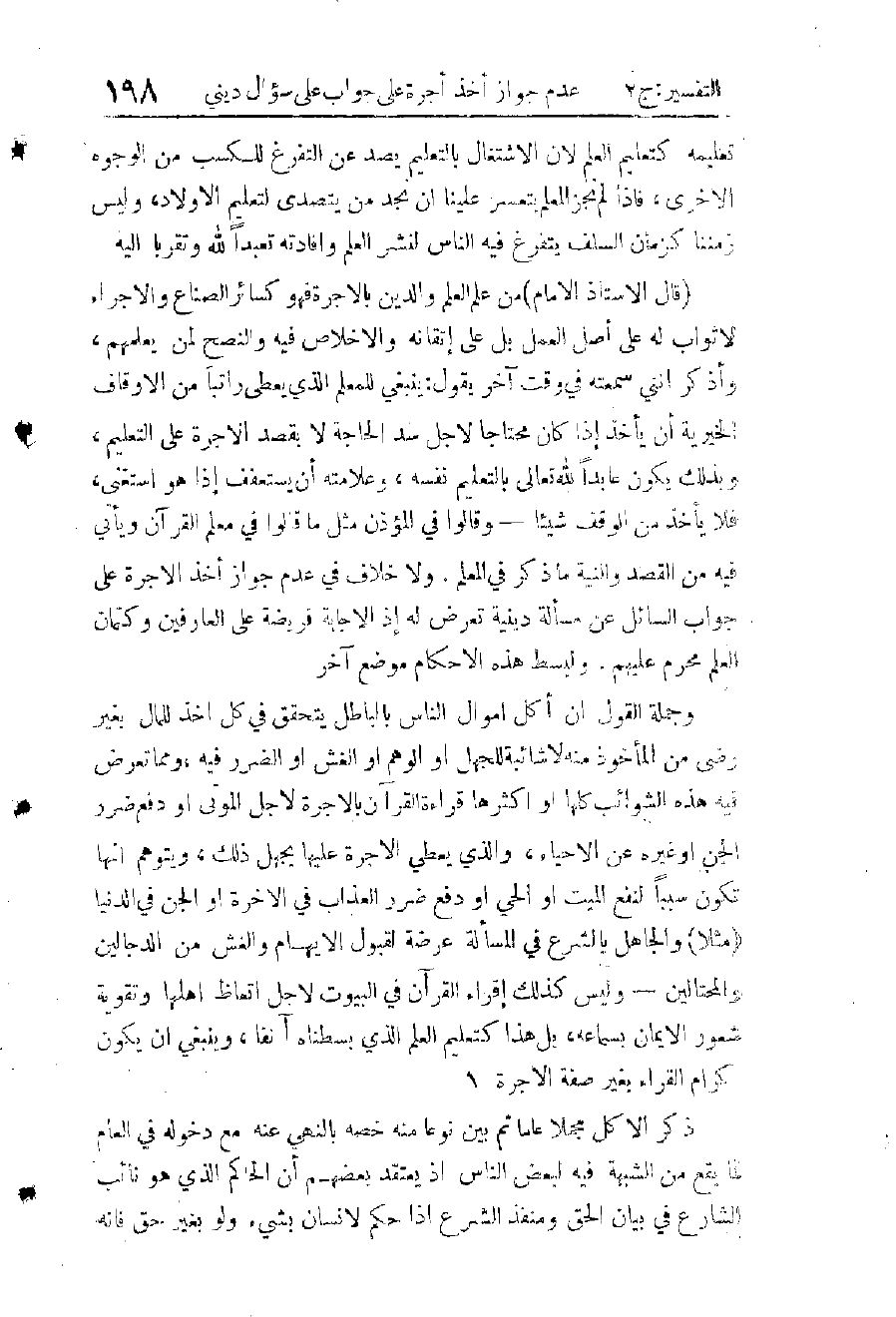 وَعَلَى هَذَا الْوَجْهِ فِي التَّفْسِيرِ تَكُونُ جُمْلَةُ (وَيُشْهِدُ اللهَ) وَصْفًا مُسْتَقِلًّا غَيْرَ حَالٍ مِمَّا قَبْلَهُ ; أَيْ: أَنَّهُ لَا يُحْسِنُ إِلَّا الْكَلَامَ فِي الدُّنْيَا لِيُعْجِبَ السَّامِعَ وَيَخْدَعَهُ، وَلَكِنَّهُ يَزْعُمُ أَنَّ قَلْبَهُ مَعَ اللهِ، وَأَنَّهُ حَسَنُ السَّرِيرَةِ، وَإِنَّكَ لَتَرَى هَذَا فِي سِيرَةِ الْمُجْرِمِينَ ظَاهِرًا جَلِيًّا كَمَا وَصَفَ اللهُ تَعَالَى: يَتْرُكُونَ الصَّلَاةَ، وَيَمْنَعُونَ الزَّكَاةَ، وَيَشْرَبُونَ الْخُمُورَ، وَيَتَسَابَقُونَ إِلَى الْفُجُورِ، وَيَأْكُلُونَ أَمْوَالَ النَّاسِ بِالْبَاطِلِ، ثُمَّ يُفَضِّلُونَ أَنْفُسَهُمْ فِي الدِّينِ عَلَى أَهْلِ النَّزَاهَةِ وَالتَّقْوَى، زَاعِمِينَ أَنَّ هَؤُلَاءِ الْمُتَّقِينَ قَدْ عَمَرَتْ ظَوَاهِرُهُمْ بِالْعَمَلِ وَالْإِرْشَادِ، وَلَكِنَّ بَوَاطِنَهُمْ خَرِبَةٌ بِسُوءِ الِاعْتِقَادِ، وَيَقُولُونَ: نَعَمْ إِنَّنَا نَحْنُ نَأْكُلُ الرِّبَا أَوِ الْقِمَارَ وَلَكُنَّا نُحَرِّمُهُ، وَنَأْتِي فِي نَادِينَا وَخَلْوَتِنَا الْمُنْكَرَ وَلَكِنَّا لَا نَسْتَحْسِنُهُ، وَأَنَّ مَا نَبْتَزُّهُ مِنْ جُيُوبِ الْأَغْنِيَاءِ بِخَلَابَتِنَا لَيْسَ الْمَقْصُودُ بِهِ تَرْفِيهَ مَعِيشَتِنَا، وَإِنَّمَا هُوَ أَجْرٌ عَلَى السَّعْيِ فِي إِعْلَاءِ شَأْنِهِمْ، وَمُكَافَأَةً عَلَى خِدْمَةِ أَوْطَانِهِمْ. فَهُمْ بِهَذِهِ الدَّعَاوَى أَلَدُّ الْخُصَمَاءِ، أَلَا إِنَّهُمْ هُمُ السُّفَهَاءُ، فَقَدْ جَرَتْ سُنَّةُ اللهِ تَعَالَى فِي خَلْقِهِ، وَدَلَّتْ هِدَايَتُهُ فِي كِتَابِهِ، عَلَى أَنَّ سَلَامَةَ الِاعْتِقَادِ وَإِخْلَاصَ السَّرِيرَةِ هُمَا يَنْبُوعُ الْأَعْمَالِ الصَّالِحَةِ، وَالْأَقْوَالِ النَّافِعَةِ (وَالْبَلَدُ الطَّيِّبُ يَخْرُجُ نَبَاتُهُ بِإِذْنِ رَبِّهِ وَالَّذِي خَبُثَ لَا يَخْرُجُ إِلَّا نَكِدًا) (7: 58) .