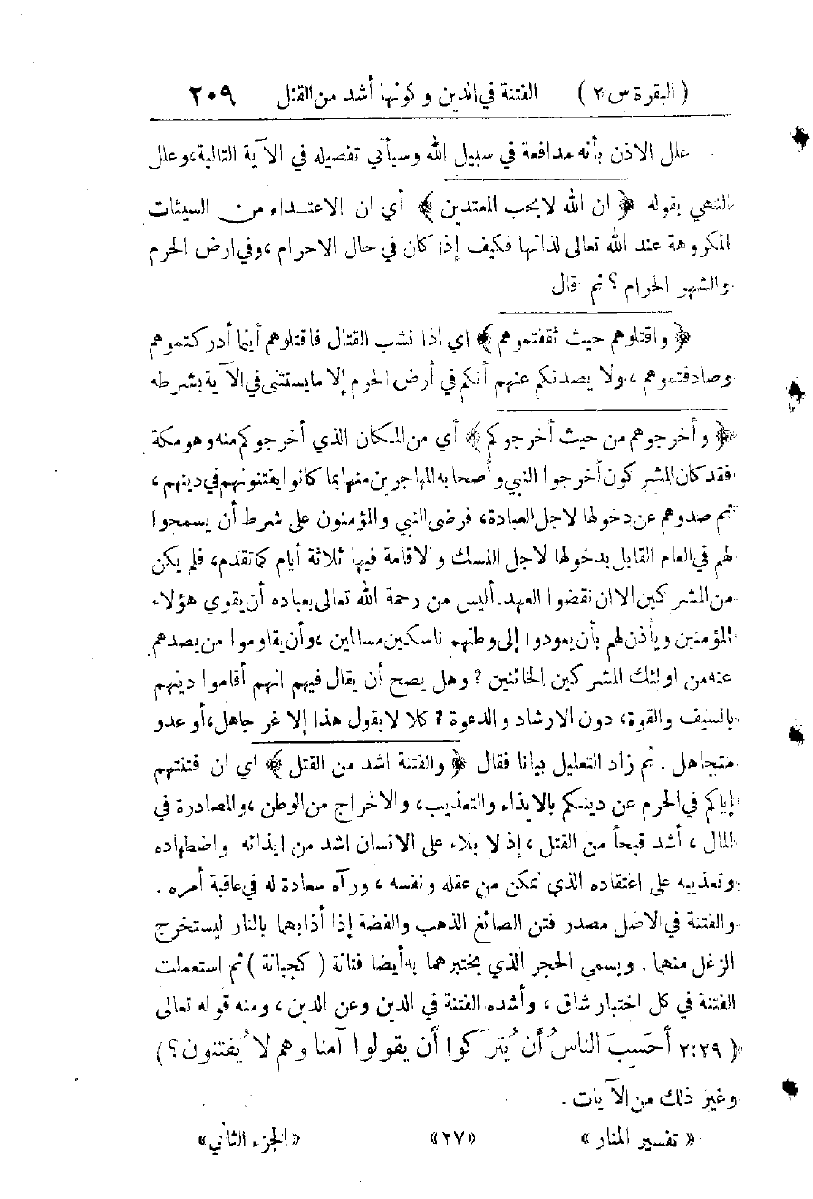 وَالْآيَتَانِ الْمُفَسَّرَتَانِ آنِفًا وَمَا فِي مَعْنَاهُمَا كَقَوْلِهِ تَعَالَى: (وَاعْتَصِمُوا بِحَبْلِ اللهِ جَمِيعًا وَلَا تَفَرَّقُوا) إِلَى قَوْلِهِ: (وَلَا تَكُونُوا كَالَّذِينِ تَفَرَّقُوا وَاخْتَلَفُوا مِنْ بَعْدِ مَا جَاءَهُمُ الْبَيِّنَاتُ وَأُولَئِكَ لَهُمْ عَذَابٌ عَظِيمٌ) (3: 103 - 105) وَقَوْلُهُ: (إِنَّ الَّذِينَ فَرَّقُوا دَيْنَهُمْ وَكَانُوا شِيَعًا لَسْتَ مِنْهُمْ فِي شَيْءٍ) (6: 159) كُلُّهَا هَادِمَةٌ لِلتَّقَالِيدِ الَّتِي فَرَّقَتِ الْأُمَّةَ وَجَعَلَتْهَا شِيَعًا، حَتَّى صَارَ بَأْسُهَا بَيْنَهَا شَدِيدًا فَسَفَكَتْ دِمَاءَهَا بِأَيْدِيهَا، وَمَزَّقَتْ دُنْيَاهَا بِتَمْزِيقِ دِينِهَا، وَكَانَ مِنْ أَمْرِهَا بَعْدَ ذَلِكَ مَا نَرَى سُوءَ عَاقِبَتِهِ فِي كُلِّ شَعْبٍ وَكُلِّ قُطْرٍ.