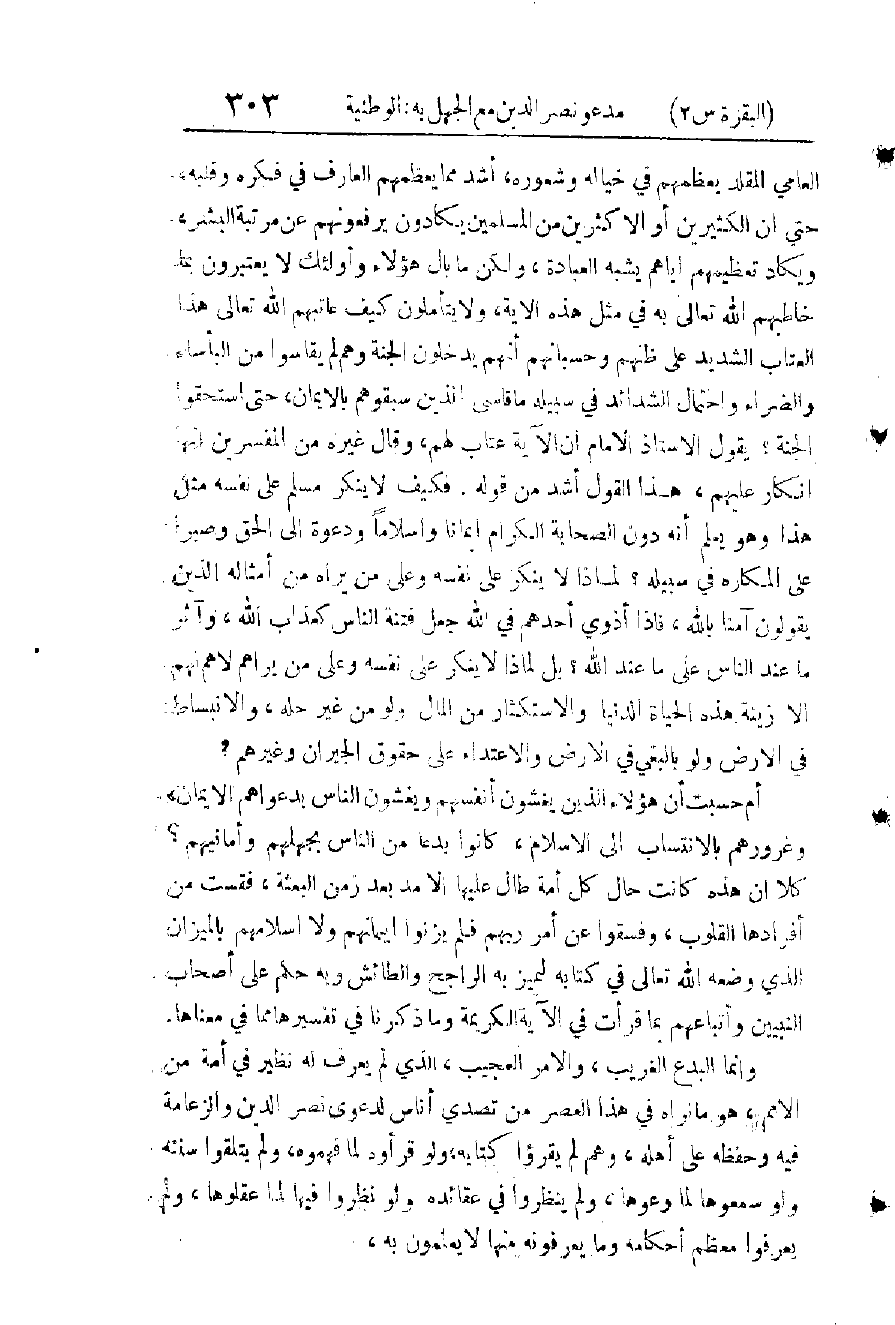قَالَ الْأُسْتَاذُ الْإِمَامُ (رَحِمَهُ اللهُ تَعَالَى) مَا مِثَالُهُ بِإِيضَاحٍ: قَدْ ذَكَرَ فِي الْآيَةِ السَّابِقَةِ الطَّلَاقَ عَلَى الطَّلَاقِ وَذَكَرَ الْعِدَّةَ، وَالطَّلَاقُ هُنَا هُوَ الطَّلَاقُ هُنَاكَ. وَهُوَ عِبَارَةٌ عَنْ مُفَارَقَةِ الْمَرْأَةِ الْمَدْخُولِ بِهَا، بِحَلِّ الرَّجُلِ عُقْدَةَ الزَّوْجِيَّةِ الَّتِي تَرْبُطُهُمَا مَعًا، وَاللَّفْظُ دَلَّ عَلَى هَذَا الْمَعْنَى; فَهَذَا بَيَانٌ لِأَصْلِ الشَّرْعِ فِي الطَّلَاقِ جَاءَ عَلَى صِيغَةِ الْخَبَرِ لِتَقْرِيرِهِ وَتَوْكِيدِهِ كَقَوْلِهِ: (وَالْمُطَلَّقَاتُ يَتَرَبَّصْنَ) أَيْ: إِنَّ حَدَّ اللهِ الَّذِي حَدَّهُ لِلطَّلَاقِ وَلَمْ يُخْرِجْ بِهِ الْعِصْمَةَ مِنْ أَيْدِي الرِّجَالِ هُوَ مَرَّتَانِ; أَيْ: طَلْقَتَانِ، وَعَبَّرَ بِالْمَرَّتَيْنِ لِيُفِيدَ أَنَّ الطَّلْقَتَيْنِ تَكُونُ كُلٌّ مِنْهُمَا مَرَّةً تَحِلُّ بِهَا الْعِصْمَةُ ثُمَّ تُبْرَمُ، لَا أَنَّهُمَا يَكُونَانِ بِلَفْظٍ وَاحِدٍ، وَلِهَذَا رُوِيَ عَنِ ابْنِ عَبَّاسٍ أَنَّهُ جَعَلَ كَلِمَةَ (طَلَّقْتُ ثَلَاثًا) بِمَثَابَةِ قَرَأْتُ الْفَاتِحَةَ ثَلَاثًا، فَإِنْ كَانَ صَادِقًا فَالطَّلَاقُ صَحِيحٌ وَإِلَّا فَهُوَ لَغْوٌ مِنَ الْقَوْلِ، وَقَوْلُ: إِنَّ إِنْشَاءَ الطَّلَاقِ ثَلَاثًا بِالْقَوْلِ لَيْسَ فِي قُدْرَةِ الرَّجُلِ إِيقَاعُهُ مَرَّةً وَاحِدَةً; ذَلِكَ أَنَّ الْأُمُورَ الْعَمَلِيَّةَ لَا تَتَكَرَّرُ بِتَكَرُّرِ الْقَوْلِ الْمُعَبِّرِ عَنْهَا، بَلْ وَلَا الْقَوْلِيَّةَ أَيْضًا. فَمَنْ فَسَخَ الْعَقْدَ مَرَّةً وَعَبَّرَ عَنْهَا بِقَوْلِهِ ثَلَاثًا فَهُوَ كَاذِبٌ وَلَوْ صَحَّ ذَلِكَ لَصَحَّ أَنْ يُقَالَ: الْوَاحِدُ ثَلَاثَةٌ وَالثَّلَاثَةُ وَاحِدٌ. وَمَنْ سَفِهَ نَفْسَهُ وَجَاءَ بِهَذَا فَقَدْ خَرَجَ عَنِ السُّنَّةِ وَاسْتَحَقَّ التَّأْدِيبَ. فَقَدْ رَوَى النَّسَائِيُّ مِنْ حَدِيثِ مَحْمُودِ بْنِ لَبِيدٍ قَالَ: أَخْبَرَ رَسُولُ اللهِ - صَلَّى اللَّهُ عَلَيْهِ وَسَلَّمَ - عَنْ رَجُلٍ طَلَّقَ امْرَأَتَهُ ثَلَاثَ تَطْلِيقَاتٍ جَمِيعًا فَقَامَ غَضْبَانَ ثُمَّ قَالَ: ((أَيُلْعَبُ بِكِتَابِ اللهِ وَأَنَا بَيْنَ أَظْهُرِكُمْ؟)) حَتَّى قَالَ رَجُلٌ فَقَالَ: يَا رَسُولَ اللهِ أَلَا أَقْتُلُهُ! قَالَ ابْنُ كَثِيرٍ: إِسْنَادُهُ جَيِّدٌ، وَقَالَ الْحَافِظُ ابْنُ حَجَرٍ فِي بُلُوغِ الْمَرَامِ: رُوَاتُهُ مُوَثَّقُونَ. وَقَدْ صَرَّحَ جَمَاهِيرُ الْعُلَمَاءِ وَمِنْهُمُ الْحَنَفِيَّةُ بِأَنَّ الطَّلَاقَ الشَّرْعِيَّ هُوَ مَا كَانَ مَرَّةً بَعْدَ مَرَّةٍ، وَأَنَّ جَمْعَ الثِّنْتَيْنِ أَوِ الثَّلَاثِ بِدْعَةٌ، وَأَنَّهُ حَرَامٌ.