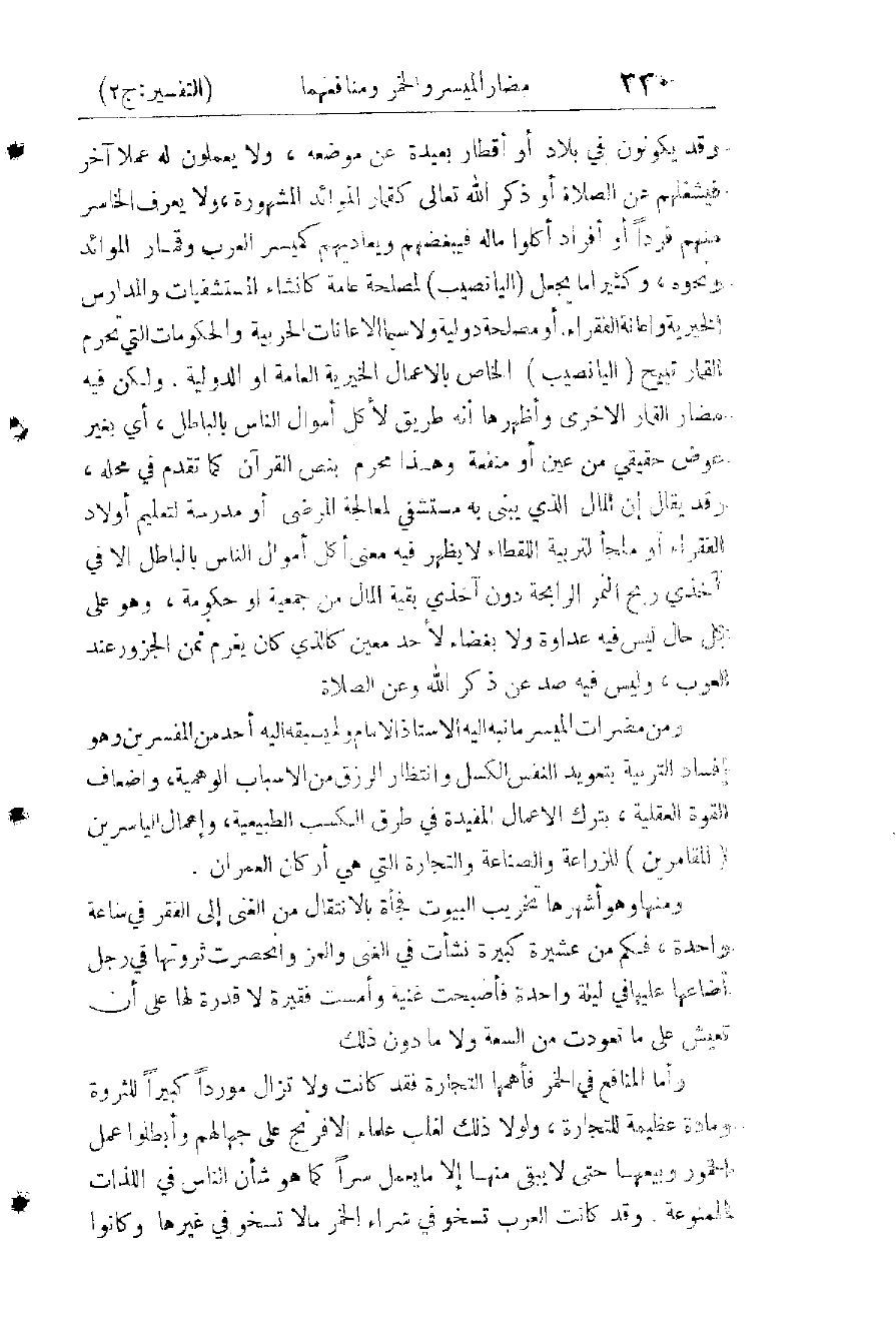 أَقُولُ: ذَكَرَ الْمُؤَرِّخُونَ أَنَّ أَبَا مُحَمَّدٍ الْجُوَيْنِيَّ وَالِدَ إِمَامِ الْحَرَمَيْنِ الشَّهِيرِ (وَاسْمُهُ عَبْدُ الْمَلِكِ) كَانَ يَنْسَخُ بِالْأُجْرَةِ، فَاجْتَمَعَ لَهُ مِنْ كَسْبِ يَدِهِ شَيْءٌ اشْتَرَى بِهِ جَارِيَةً مَوْصُوفَةً بِالْخَيْرِ وَالصَّلَاحِ، وَكَانَ يُطْعِمُهَا مِنْهُ إِلَى أَنْ حَمَلَتْ بِإِمَامِ الْحَرَمَيْنِ وَهُوَ مُسْتَمِرٌّ عَلَى تَرْبِيَتِهَا الْحَسَنَةِ وَتَغْذِيَتِهَا بِالْحَلَالِ، فَلَمَّا وَضَعَتْهُ أَوْصَاهَا أَلَّا تُمَكِّنَ أَحَدًا مِنْ إِرْضَاعِهِ، فَاتَّفَقَ أَنْ دَخَلَ عَلَيْهَا يَوْمًا وَهِيَ مُتَأَلِّمَةٌ وَالصَّغِيرُ يَبْكِي وَقَدْ أَخَذَتْهُ امْرَأَةٌ مِنْ جِيرَانِهِمْ وَشَاغَلَتْهُ بِثَدْيِهَا فَرَضَعَ مِنْهَا قَلِيلًا، فَلَمَّا رَأَى ذَلِكَ شَقَّ عَلَيْهِ وَأَخَذَهُ إِلَيْهِ وَنَكَّسَ رَأْسَهُ وَمَسَحَ عَلَى بَطْنِهِ وَأَدْخَلَ أَصْبُعَهُ فِي فِيهِ، وَلَمْ يَزَلْ بِهِ حَتَّى قَاءَ جَمِيعَ مَا شَرِبَهُ، وَهُوَ يَقُولُ: يَسْهُلُ عَلَيَّ أَنْ يَمُوتَ وَلَا يَفْسُدُ طَبْعُهُ بِشُرْبِ لِبَنِ غَيْرِ أُمِّهِ، وَيُحْكَى عَنْ إِمَامِ الْحَرَمَيْنِ أَنَّهُ كَانَ يَلْحَقُهُ بَعْضُ الْأَحْيَانِ فَتْرَةٌ فِي مَجْلِسِ الْمُنَاظَرَةِ فَيَقُولُ: هَذَا مِنْ بَقَايَا تِلْكَ الرَّضْعَةِ، فَانْظُرْ إِلَى هَذِهِ الْمُبَالَغَةِ فِي الْعِنَايَةِ بِتَرْبِيَةِ الْأَطْفَالِ مِنْ هَؤُلَاءِ الْأَئِمَّةِ، وَقَابِلْهُ بِتَهَاوُنِ النَّاسِ الْيَوْمَ فِي أَمْرِ الْوِلْدَانِ فِي رَضَاعَتِهِمْ وَسَائِرِ شُئُونِهِمْ، حَتَّى إِنَّ الْأُمَّهَاتِ اللَّوَاتِي فَطَرَهُنَّ اللهُ تَعَالَى عَلَى التَّلَذُّذِ بِإِرْضَاعِ أَوْلَادِهِنَّ وَالْغِبْطَةِ بِهِ، قَدْ صَارَ نِسَاءُ الْأَغْنِيَاءِ مِنْهُنَّ يَرْغَبْنَ عَنْهُ تَرَفُّعًا وَطَمَعًا فِي السِّمَنِ وَبَقَاءِ الْجَمَالِ، أَوِ ابْتِغَاءَ سُرْعَةِ الْحَمْلِ، وَكُلُّ هَذَا مُقَاوَمَةٌ لِلْفِطْرَةِ وَمَفْسَدَةٌ لِلنَّسْلِ، وَقَدْ فَطِنَ لَهُ مَنْ عَرَفَ سُنَنَ الْفِطْرَةِ مِنَ الْأُمَمِ الْمُرْتَقِيَةِ بِالْعِلْمِ وَالتَّرْبِيَةِ، حَتَّى بَلَغَنَا أَنَّ قَيْصَرَةَ الرُّوسِيَّةِ تُرْضِعُ أَوْلَادَهَا وَتُحَرِّمُ عَلَيْهِمُ الْمَرَاضِعَ.