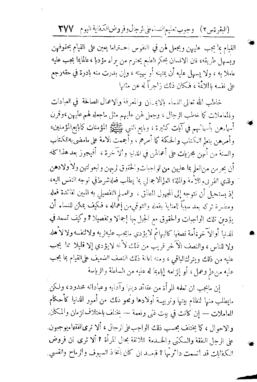 مِنَ الْفَوَائِدِ الِاجْتِمَاعِيَّةِ أَنَّ الْأُمَمَ الَّتِي تَفْسُدُ أَخْلَاقُهَا وَتَضْعُفُ، قَدْ تُفَكِّرُ فِي الْمُدَافَعَةِ عِنْدَ الْحَاجَةِ إِلَيْهَا وَتَعْزِمُ عَلَى الْقِيَامِ بِهَا إِذَا تَوَفَّرَتْ شَرَائِطُهَا الَّتِي يَتَخَيَّلُونَهَا عَلَى حَدِّ قَوْلِ الشَّاعِرِ: