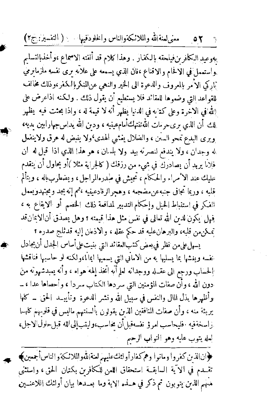 الَّتِي يُوَجِّهُهُمْ كِتَابُهُ إِلَى النَّظَرِ فِيهَا، وَيُرْشِدُهُمْ إِلَى اسْتِخْرَاجِ الْعِبَرِ مِنْهَا؟ أَلَيْسَ مِنْ أَشَدِّ الْمَصَائِبِ عَلَى الْمِلَّةِ أَنْ يَهْجُرَ رُؤَسَاءُ دِينٍ كَهَذَا الدِّينِ الْعُلُومَ الَّتِي تَشْرَحُ حِكَمَ اللهِ وَآيَاتِهِ فِي خَلْقِهِ وَيَعُدُّوهَا مُضْعِفَةً لِلدِّينِ أَوْ مَاحِيَةً لَهُ خِلَافًا لِكِتَابِ اللهِ الَّذِي يَسْتَدِلُّ لَهُمْ بِهَا وَيُعَظِّمُ شَأْنَ النَّظَرِ فِيهَا؟ بَلَى ; وَإِنَّهُمْ لَيُصِرُّونَ عَلَى تَقَالِيدِهِمْ هَذِهِ وَلَيْسَ عَلَيْهَا حُجَّةٌ وَإِنَّمَا اتَّبَعُوا فِيهَا سَنَنَ قَوْمٍ مِمَّنْ قَبْلَهُمْ، وَكَانَ بَعْضُ الْحُكَمَاءِ الْمُتَأَخِّرِينَ يَقُولُ كَلِمَةً فِي أَهْلِ دِينِهِ الَّذِينَ خَذَلُوهُ: هَكَذَا شَأْنُ أَهْلِ الْأَدْيَانِ كَافَّةً، كَأَنَّهُمْ تَعَاهَدُوا جَمِيعًا عَلَى أَنْ يَكُونَ سَيْرُهُمْ وَاحِدًا. وَهَذَا الْمَعْنَى مَأْخُوذٌ مِنْ قَوْلِ اللهِ تَعَالَى فِي الْكَافِرِينَ يُنْفِقُونَ فِي كُلِّ أُمَّةٍ عَلَى الطَّعْنِ فِي نَبِيِّهَا: (أَتَوَاصَوْا بِهِ بَلْ هُمْ قَوْمٌ طَاغُونَ) (51: 53) .