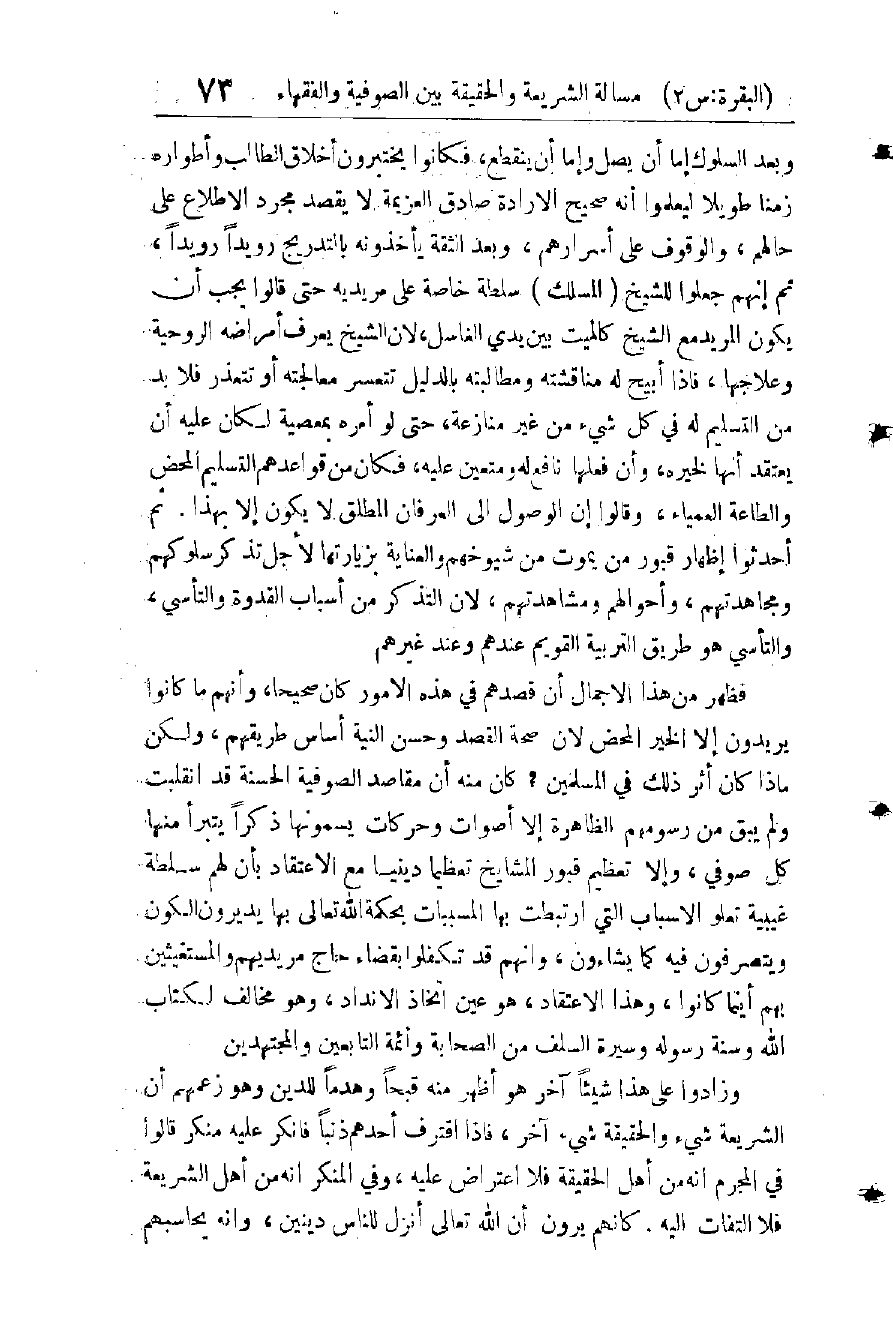 قَالَ الْأُسْتَاذُ الْإِمَامُ هُنَا: كُلُّ مَنْ يَزِيدُ فِي الدِّينِ عَقِيدَةً أَوْ حُكْمًا مِنْ غَيْرِ اسْتِنَادٍ إِلَى كِتَابِ اللهِ أَوْ كَلَامِ الْمَعْصُومِ فَهُوَ مِنَ الَّذِينَ يَقُولُونَ عَلَى اللهِ مَا لَا يَعْلَمُونَ. وَمَثَّلَ لِذَلِكَ بِالزَّائِرَاتِ لِلْقُبُورِ وَمَا يَأْتِينَهُ هُنَاكَ مِنَ الْبِدَعِ وَالْمُنْكَرَاتِ بِاسْمِ الدِّينِ، وَبِتَشْيِيعِ الْجَنَائِزِ بِقِرَاءَةِ الْبُرْدَةِ وَنَحْوِهَا بِالنَّغْمَةِ الْمَعْرُوفَةِ. وَبِحَمْلِ الْمَبَاخِرِ الْفِضِّيَّةِ وَالْأَعْلَامِ أَمَامَهَا، وَبِالِاجْتِمَاعِ لِقِرَاءَةِ الدَّلَائِلِ وَنَحْوِهَا مِنَ الْأَوْرَادِ بِالصِّيَاحِ الْخَاصِّ، وَقَالَ: إِنَّ كُلَّ هَذَا جَاءَ مِنِ اسْتِحْسَانِ مَا عِنْدَ الطَّوَائِفِ الْأُخَرِ. وَلَيْسَ فِي الْإِسْلَامِ صَيْحَةٌ غَيْرُ صَيْحَةِ الْأَذَانِ. وَقَدْ قَالَ تَعَالَى فِي الصَّلَاةِ: (وَلَا تَجْهَرْ بِصَلَاتِكَ وَلَا تُخَافِتْ بِهَا) (17: 110) وَأَمَّا التَّلْبِيَةُ فَلَمْ يُشْرَعْ فِيهَا رَفْعُ الصَّوْتِ وَالصِّيَاحُ الشَّدِيدَ، وَإِنَّمَا يَكُونُ الْعَجِيجُ مِنْ كَثْرَةِ النَّاسِ وَاخْتِلَافِ أَصْوَاتِهِمْ، وَإِنْ لَمْ يَرْفَعُوا عَقِيرَتَهُمْ جَهْدَ الْمُسْتَطَاعِ كَمَا يَفْعَلُ مُقَلِّدَةُ التَّصَوُّفِ. قَالَ: وَإِنَّ كَثِيرًا مِنَ الْبِدَعِ فِي الْعَقَائِدِ وَالْأَحْكَامِ قَدْ دَخَلَتْ عَلَى الْمُسْلِمِينَ بِتَسَاهُلِ رُؤَسَاءِ الدِّينِ وَتَوَهُّمِهِمْ أَنَّهَا تُقَوِّي أَصْلَ الْعَقِيدَةِ وَتُخْضِعُ الْعَامَّةَ لِسُلْطَانِ الدِّينِ، أَوْ لِسُلْطَانِهِمُ الْمُسْتَنِدِ إِلَى الدِّينِ. وَلَقَدْ دَخَلْتُ كَنِيسَةَ (بَيْتِ لَحْمٍ) فَسَمِعْتُ هُنَاكَ أَصْوَاتًا خُيِّلَ إِلَيَّ أَنَّهَا أَصْوَاتُ طَائِفَةٍ مِنْ أَهْلِ الطَّرِيقِ يَقْرَءُونَ حِزْبَ الْبِرِّ مَثَلًا ثُمَّ عَلِمْتُ أَنَّهُمْ قِسِّيسُونَ، فَهَذِهِ الْبِدَعُ قَدْ سَرَتْ إِلَيْنَا مِنْهُمْ كَمَا سَرَتْ إِلَيْهِمْ مِنَ الْوَثَنِيِّينَ ; اسْتِحْسَانًا مِنْهُمْ مَا اسْتَحْسَنُوهُ مِنْ أُولَئِكَ تَوَهُّمًا أَنَّهُ يُفِيدُ الدِّينَ أُبَّهَةً وَفَخَامَةً وَيَزِيدُ النَّاسَ بِهِ اسْتِمْسَاكًا، فَكَانَ أَنْ تَرَكَ النَّاسُ مُهِمَّاتِ الدِّينِ اكْتِفَاءً بِهَذِهِ الْبِدَعِ، فَإِنَّ أَكْثَرَ الصَّائِحِينَ فِي الْأَضْرِحَةِ وَقِبَابِ الْأَوْلِيَاءِ وَفِي الطُّرُقِ وَالْأَسْوَاقِ بِالْأَوْرَادِ وَالْأَحْزَابِ لَا يُقِيمُونَ الصَّلَاةَ، وَمَنْ عَسَاهُ يُصَلِّي مِنْهُمْ فَإِنَّهُ لَا يَحْرِصُ عَلَى الْجَمَاعَةِ بَعْضَ حِرْصِهِ عَلَى الِاجْتِمَاعِ لِلصِّيَاحِ بِقِرَاءَةِ الْحِزْبِ فِي لَيْلَةِ الْوَلِيِّ فُلَانٍ، وَلَقَدْ أَنِسَ النَّاسُ بِهَذِهِ الْبِدَعِ وَاسْتَوْحَشُوا مِنْ شَعَائِرِ الدِّينِ وَالسُّنَنِ حَتَّى ظَهَرَ فِيهِمْ تَأْوِيلُ قَوْلِهِ عَزَّ وَجَلَّ: