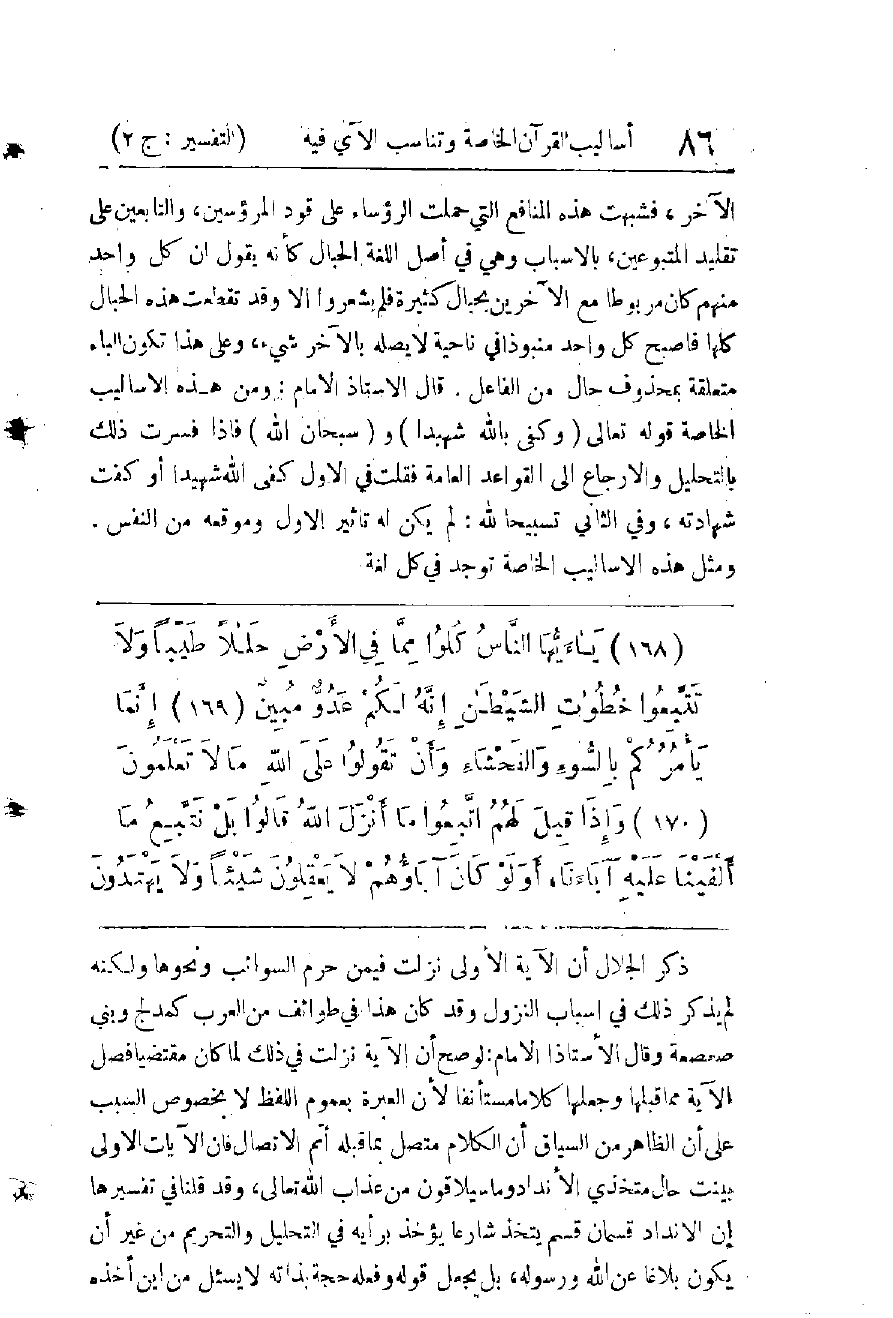 وَقَالَ الْأُسْتَاذُ الْإِمَامُ فِي الْعِبَارَةِ مَا مَعْنَاهُ مَبْسُوطًا: إِنَّ الْكَلَامَ فِي أَكْلِهِمُ النَّارَ وَالتَّعَجُّبِ مِنْ صَبْرِهِمْ عَلَى النَّارِ هُوَ تَصْوِيرٌ لِحَالِهِمْ وَتَمْثِيلٌ لِمَآلِهِمْ. أَمَّا الثَّانِي فَظَاهِرٌ، وَأَمَّا الْأَوَّلُ فَيَتَجَلَّى لَكَ إِذَا تَمَثَّلْتَ حَالَ قَوْمٍ عِنْدَهُمْ كِتَابٌ يُؤْمِنُونَ أَنَّهُ مِنَ اللهِ، وَيُؤْمِنُونَ بِلِقَاءِ اللهِ، وَقَدْ كَتَمُوا مَا أَنْزَلَ اللهُ فِيهِ بِالتَّحْرِيفِ وَالتَّأْوِيلِ كَمَا فَعَلَ الْيَهُودُ بِكِتْمَانِ وَصْفِ الرَّسُولِ، وَهُمْ يُقَارَعُونَ بِالدَّلَائِلِ الْعَقْلِيَّةِ، وَيُذَكَّرُونَ بِآيَاتِ اللهِ وَأَيَّامِهِ فَيَشْعُرُونَ بِجَاذِبَيْنِ مُتَعَاكِسَيْنِ: جَاذِبِ الْحَقِّ الَّذِي عَرَفُوهُ، وَجَاذَبِ الْبَاطِلِ الَّذِي أَلِفُوهُ، ذَاكَ يُحْدِثُ لَهُمْ هِزَّةً وَتَأْثِيرًا، وَهَذَا يُحْدِثُ لَهُمُ اسْتِكْبَارًا وَنُفُورًا، وَقَدْ غَلَبَ عُقُولَهُمْ مَا عَرَفُوا، وَغَلَبَ قُلُوبَهُمْ مَا أَلِفُوا، فَثَبَتُوا عَلَى مَا حَرَّفُوا وَانْحَرَفُوا، وَصَارُوا إِلَى حَرْبٍ عَوَانٍ بَيْنَ الْعَقْلِ وَالْوِجْدَانِ، يَتَصَوَّرُونَ الْخَطَرَ الْآجِلَ فَيَتَنَغَّصُ عَلَيْهِمُ التَّلَذُّذُ بِالْعَاجِلِ، وَيَتَذَوَّقُونَ حَلَاوَةَ مَا هُمْ فِيهِ فَيُؤْثِرُونَهُ عَلَى مَا سَيَصِيرُونَ إِلَيْهِ.