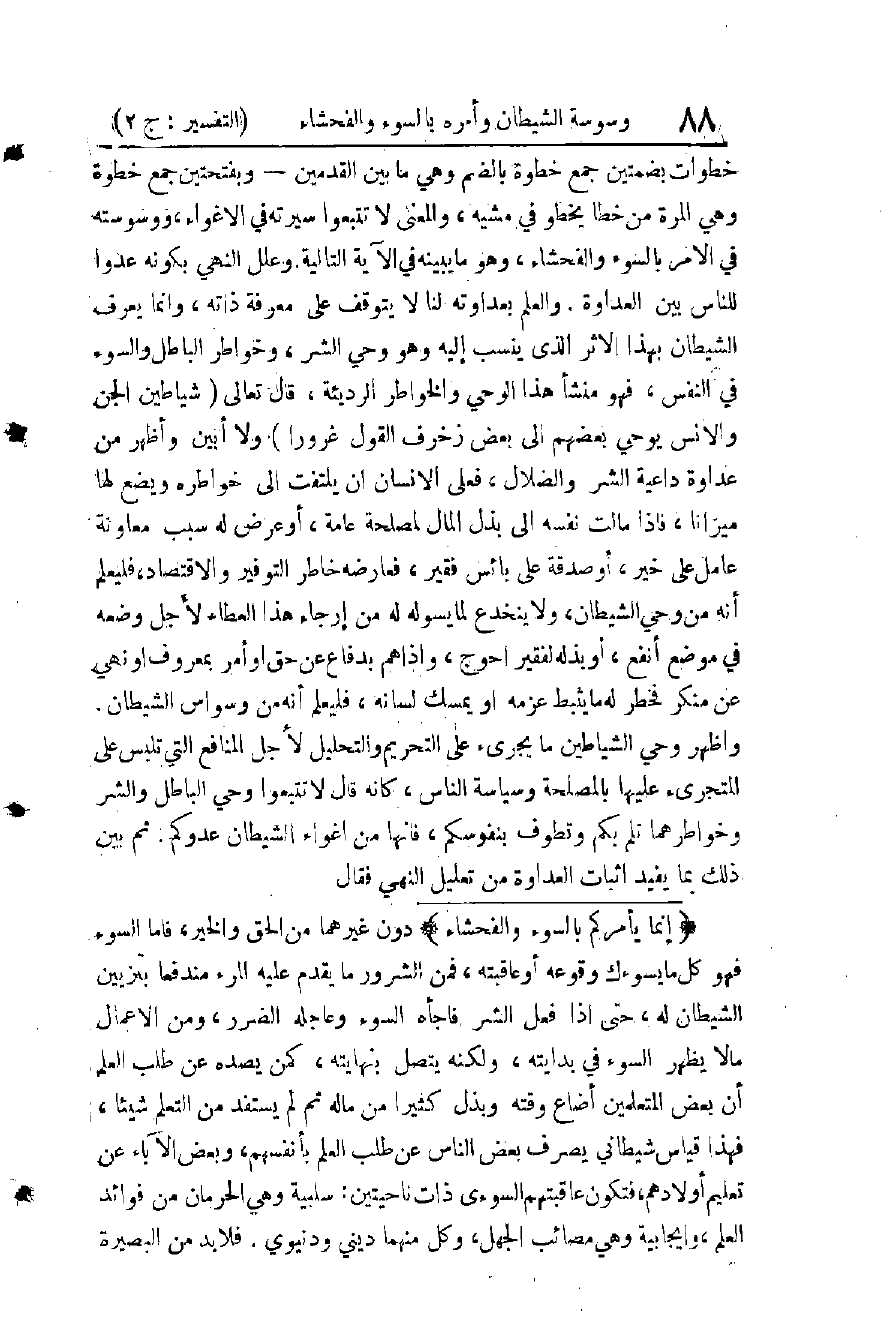 وَأَزِيدُ هَذَا إِيضَاحًا بِمَا حَقَّقْتُهُ فِي هَذِهِ الْمَسْأَلَةِ بَعْدَ الطَّبْعَةِ الْأُولَى لِهَذَا الْجُزْءِ، وَهُوَ أَنَّ مَا كَانَ قَطْعِيَّ الدَّلَالَةِ مِنَ النُّصُوصِ فَهُوَ الشَّرْعُ الْعَامُّ الَّذِي يَجِبُ عَلَى جَمِيعِ الْمُسْلِمِينَ اتِّبَاعُهُ عَمَلًا وَقَضَاءً، وَأَنَّ مَا كَانَ ظَنِّيَّ الدَّلَالَةِ فَهُوَ مَوْكُولٌ إِلَى اجْتِهَادِ الْأَفْرَادِ فِي التَّعَبُّدَاتِ وَالْمُحَرَّمَاتِ، وَإِلَى أُولِي الْأَمْرِ فِي الْأَحْكَامِ الْقَضَائِيَّةِ، وَسَنَعُودُ إِلَى بَيَانِ هَذَا فِي تَفْسِيرِ (يَسْأَلُونَكَ عَنِ الْخَمْرِ وَالْمَيْسِرِ) (2: 219) مِنْ هَذَا الْجُزْءِ.