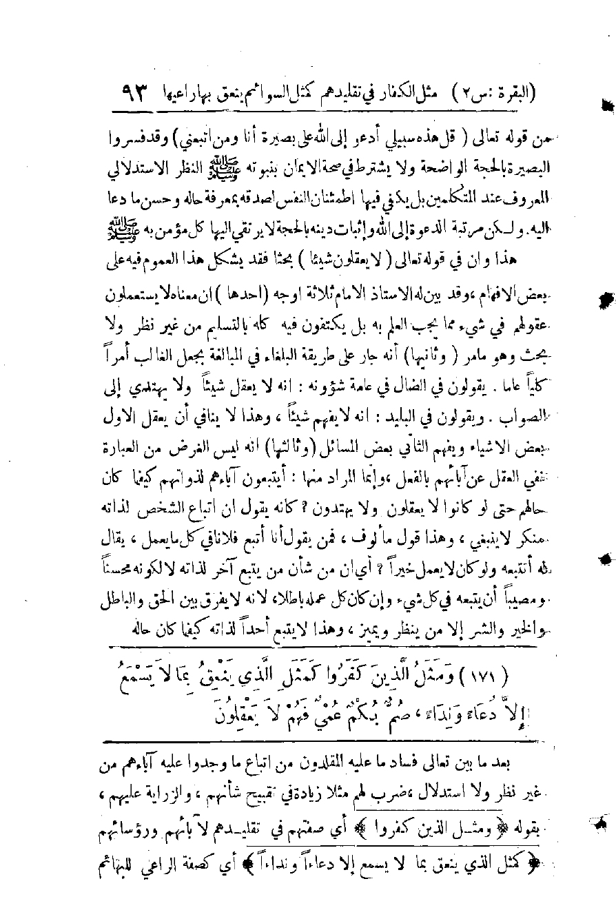فَمَا بَالُ مُدَّعِي الْإِيمَانِ بِالْكِتَابِ قَدْ أَعْرَضُوا عَنِ امْتِثَالِ أَمْرِهِ وَنَهْيِهِ حَتَّى صَارُوا يَعُدُّونَ حِفْظَهُ وَقِرَاءَتَهُ مِنْ مَوَانِعِ الْجِهَادِ فِي سَبِيلِ اللهِ بِالْمَالِ وَالنَّفْسِ، فَكَانَ مِنْ قَوَانِينِهِمْ أَنَّ حَافِظَ الْقُرْآنِ لَا يُطَالَبُ بِتَعَلُّمِ فُنُونِ الْحَرْبِ وَالْجِهَادِ ; لِأَنَّهُ حَافِظٌ، وَصَارَ حَمَلَةُ الْكِتَابِ لَا يُطَالَبُونَ بِبَذْلِ شَيْءٍ مِنْ مَالِهِمْ فِي سَبِيلِ اللهِ، حَتَّى إِذَا مَا طُولِبَ أَحَدُهُمْ بِبَذْلِ شَيْءٍ لِإِعَانَةِ الْمَنْكُوبِينَ أَوْ لِبِنَاءِ مَسْجِدٍ وَنَحْوِ ذَلِكَ اعْتَذَرَ بِأَنَّهُ مِنَ الْعُلَمَاءِ أَوِ الْحُفَّاظِ لِكِتَابِ اللهِ تَعَالَى، بَخِلَ الْقُرَّاءُ وَالْمُتَفَقِّهَةُ بِفَضْلِ اللهِ تَعَالَى فَجَازَاهُمُ اللهُ تَعَالَى عَلَى بُخْلِهِمْ، وَوَفَّاهُمْ مَا يَسْتَحِقُّونَ عَلَى سُوءِ ظَنِّهِمْ بِرَبِّهِمْ، حَتَّى صَارُوا فِي الْغَالِبِ أَذَلَّ النَّاسِ ; لِأَنَّهُمْ عَالَةٌ عَلَى جَمِيعِ النَّاسِ.