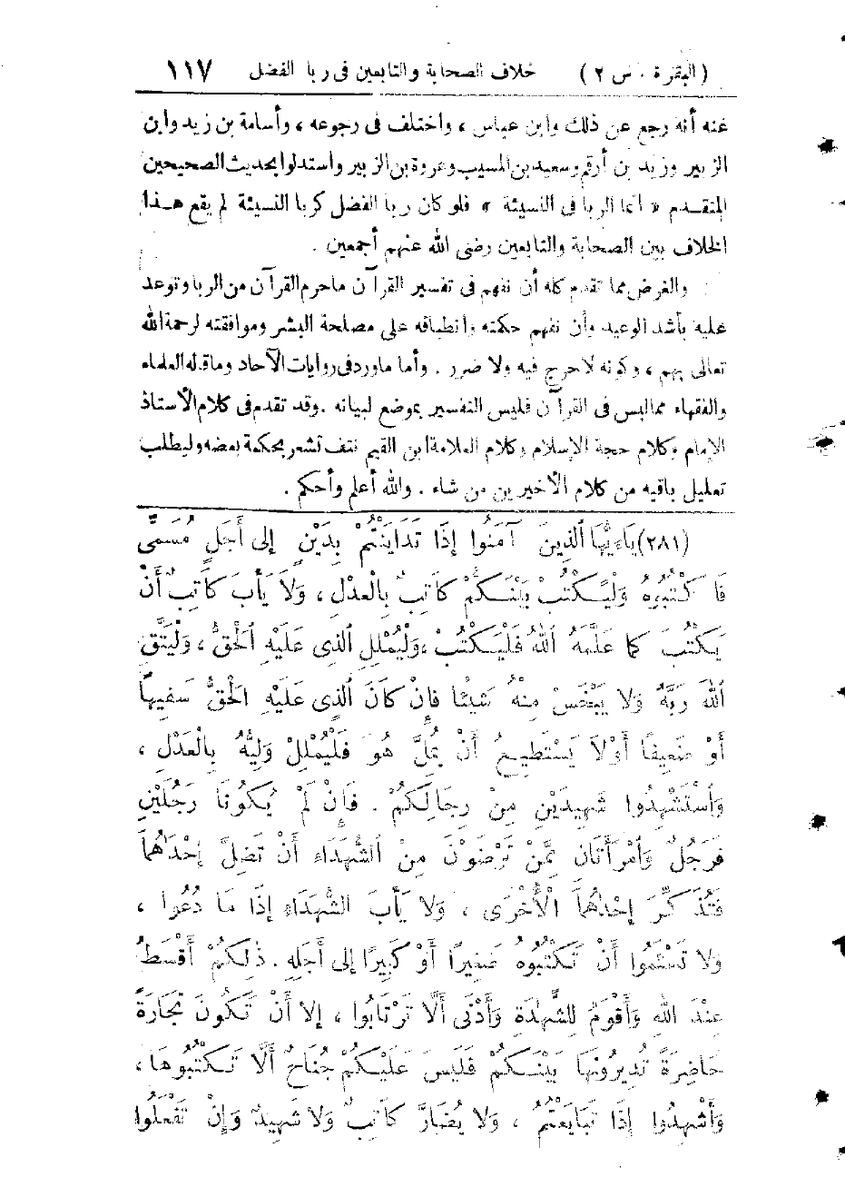 فَأَخْبَرَهُمُ اللهُ - تَعَالَى - بِأَنَّهُ لَا يُكَلِّفُ نَفْسًا إِلَّا وُسْعَهَا، وَلَا يُؤَاخِذُهَا إِلَّا عَلَى مَا كَلَّفَهَا، فَهُمْ مُكَلَّفُونَ بِتَزْكِيَةِ أَنْفُسِهِمْ وَمُجَاهَدَتِهَا بِقَدْرِ الِاسْتِطَاعَةِ وَالطَّاقَةِ وَطَلَبِ الْعَفْوِ عَمَّا لَا طَاقَةَ لَهُمْ بِهِ، كَمَا سَيَأْتِي تَفْصِيلُهُ، وَلَا يَبْعُدُ أَنْ يَكُونَ بَعْضُهُمْ قَدْ خَافَ أَنْ تَدْخُلَ الْوَسْوَسَةُ وَالشُّبْهَةُ قَبْلَ التَّمَكُّنِ مِنْ دَفْعِهَا فِي عُمُومِ الْآيَةِ، فَكَانَ مَا بَعْدَهَا مُبَيِّنًا لِغَلَطِهِمْ فِي ذَلِكَ، وَأَمَّا تَسْمِيَةُ بَعْضِهِمْ ذَلِكَ نَسْخًا فَقَدْ أَجَابَ عَنْهُ بَعْضُ الْمُفَسِّرِينَ: بِأَنَّهُ عَبَّرَ بِالنَّسْخِ عَنِ الْبَيَانِ وَالْإِيضَاحِ تَجَوُّزًا. وَذَلِكَ أَنْ تَقُولَ: إِنَّ الْمُرَادَ بِهِ النَّسْخُ اللُّغَوِيُّ وَهُوَ الْإِزَالَةُ وَالتَّحْوِيلُ لَا الِاصْطِلَاحِيُّ ; أَيْ إِنَّ الْآيَةَ الثَّانِيَةَ كَانَتْ مُزِيلَةً لِمَا أَخَافَهُمْ مِنَ الْأُولَى أَوْ مُحَوِّلَةً لَهُ إِلَى وَجْهٍ آخَرَ، وَيُحْتَمَلُ أَنْ يَكُونَ الصَّحَابِيُّ لَمْ يَنْطِقْ بِلَفْظِ النَّسْخِ، وَإِنَّمَا فَهِمَهُ الرَّاوِي مِنَ الْقِصَّةِ فَذَكَرَهُ، وَكَثِيرًا مَا يَرْوُونَ الْأَحَادِيثَ الْمَرْفُوعَةَ بِالْمَعْنَى عَلَى أَنَّهُ لَيْسَ مِنَ النَّصِّ الْمَرْفُوعِ، وَرَأْيُ الصَّحَابِيِّ لَيْسَ بِحُجَّةٍ عِنْدَ الْجَمَاهِيرِ، لَا سِيَّمَا إِذَا خَالَفَ ظَاهِرُهُ الْكِتَابَ، وَإِنَّنِي لَا أَعْتَقِدُ صِحَّةَ سَنَدِ حَدِيثٍ وَلَا قَوْلِ عَالَمٍ صَحَابِيٍّ يُخَالِفُ ظَاهِرَ الْقُرْآنِ، وَإِنْ وَثَّقُوا رِجَالَهُ فَرُبَّ رَاوٍ يُوَثَّقُ لِلِاغْتِرَارِ بِظَاهِرِ حَالِهِ، وَهُوَ سَيِّئُ الْبَاطِنِ وَلَوِ انْتُقِدَتِ الرِّوَايَاتُ مِنْ جِهَةِ فَحْوَى مَتْنِهَا كَمَا تُنْتَقَدُ مِنْ جِهَةِ سَنَدِهَا لَقَضَتِ الْمُتُونُ عَلَى كَثِيرٍ مِنَ الْأَسَانِيدِ بِالنَّقْضِ. وَقَدْ قَالُوا: إِنَّ مِنْ عَلَامَةِ الْحَدِيثِ الْمَوْضُوعِ مُخَالَفَتُهُ لِظَاهِرِ الْقُرْآنِ أَوِ الْقَوَاعِدِ الْمُقَرَّرَةِ فِي الشَّرِيعَةِ أَوْ لِلْبُرْهَانِ الْعَقْلِيِّ أَوْ لِلْحِسِّ وَالْعِيَانِ وَسَائِرِ الْيَقِينِيَّاتِ.
