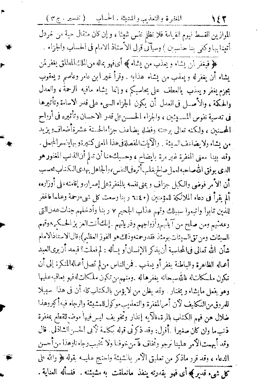 (فَصْلٌ) اعْلَمْ أَنَّهُ لَيْسَ فِي كُتُبِ التَّفْسِيرِ الْمُتَدَاوَلَةِ مَا يَرْوِي الْغَلِيلَ فِي هَذِهِ الْمَسْأَلَةِ، وَمَا ذَكَرْنَاهُ آنِفًا صَفْوَةُ مَا قَالُوهُ، وَخَيْرُهُ كَلَامُ الْأُسْتَاذِ الْإِمَامِ، وَقَدْ رَأَيْنَا أَنْ نَرْجِعَ بَعْدَ كِتَابَتِهِ إِلَى كَلَامٍ فِي الْمُتَشَابِهِ وَالتَّأْوِيلِ لِشَيْخِ الْإِسْلَامِ أَحْمَدَ بْنِ تَيْمِيَّةَ كُنَّا قَرَأْنَا بَعْضَهُ مِنْ قَبْلُ فِي تَفْسِيرِهِ لِسُورَةِ الْإِخْلَاصِ، فَرَجَعْنَا إِلَيْهِ وَقَرَأْنَاهُ بِإِمْعَانٍ، فَإِذَا هُوَ مُنْتَهَى التَّحْقِيقِ وَالْعِرْفَانِ، وَالْبَيَانِ الَّذِي لَيْسَ وَرَاءَهُ بَيَانٌ، أَثْبَتَ فِيهِ أَنَّهُ لَيْسَ فِي الْقُرْآنِ كَلَامٌ لَا يُفْهَمُ مَعْنَاهُ، وَأَنَّ الْمُتَشَابِهَ إِضَافِيٌّ إِذَا اشْتَبَهَ فِيهِ الضَّعِيفُ لَا يَشْتَبِهُ فِيهِ الرَّاسِخُ، وَأَنَّ التَّأْوِيلَ الَّذِي لَا يَعْلَمُهُ إِلَّا اللهُ - تَعَالَى - هُوَ مَا تَئُولُ إِلَيْهِ تِلْكَ الْآيَاتُ فِي الْوَاقِعِ كَكَيْفِيَّةِ صِفَاتِ اللهِ - تَعَالَى - وَكَيْفِيَّةِ عَالَمِ الْغَيْبِ مِنَ الْجَنَّةِ وَالنَّارِ وَمَا فِيهِمَا، فَلَا يَعْلَمُ أَحَدٌ غَيْرُهُ - تَعَالَى - قُدْرَتَهُ وَتَعَلُّقَهَا بِالْإِيجَادِ وَالْإِعْدَامِ وَكَيْفِيَّةَ اسْتِوَائِهِ عَلَى الْعَرْشِ، مَعَ أَنَّ الْعَرْشَ مَخْلُوقٌ لَهُ وَقَائِمٌ بِقُدْرَتِهِ، وَلَا كَيْفِيَّةَ عَذَابِ أَهْلِ النَّارِ وَلَا نَعِيمِ أَهْلِ الْجَنَّةِ كَمَا قَالَ - تَعَالَى - فِي هَؤُلَاءِ: فَلَا تَعْلَمُ نَفْسٌ مَا أُخْفِيَ لَهُمْ مِنْ قُرَّةِ أَعْيُنٍ [32: 17]