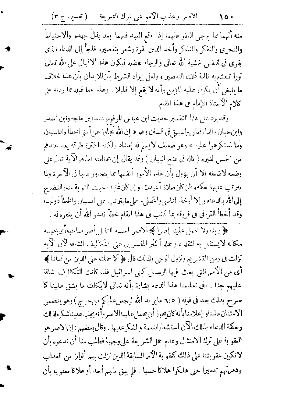وَلَكِنَّ كَثِيرًا مِنَ النَّاسِ يَزْعُمُ أَنَّ لِظَاهِرِ الْآيَةِ مَعْنًى، إِمَّا مَعْنًى يَعْتَقِدُهُ وَإِمَّا مَعْنًى بَاطِلًا فَيَحْتَاجُ إِلَى تَأْوِيلِهِ وَيَكُونُ مَا قَالَهُ بَاطِلًا لَا تَدُلُّ الْآيَةُ عَلَى مُعْتَقَدِهِ وَلَا عَلَى الْمَعْنَى الْبَاطِلِ. وَهَذَا كَثِيرٌ جِدًّا، وَهَؤُلَاءِ هُمُ الَّذِينَ يَجْعَلُونَ الْقُرْآنَ كَثِيرًا مَا يَحْتَاجُ إِلَى التَّأْوِيلِ الْمُحْدَثِ وَهُوَ صَرْفُ اللَّفْظِ عَنْ مَدْلُولِهِ إِلَى خِلَافِ مَدْلُولِهِ.