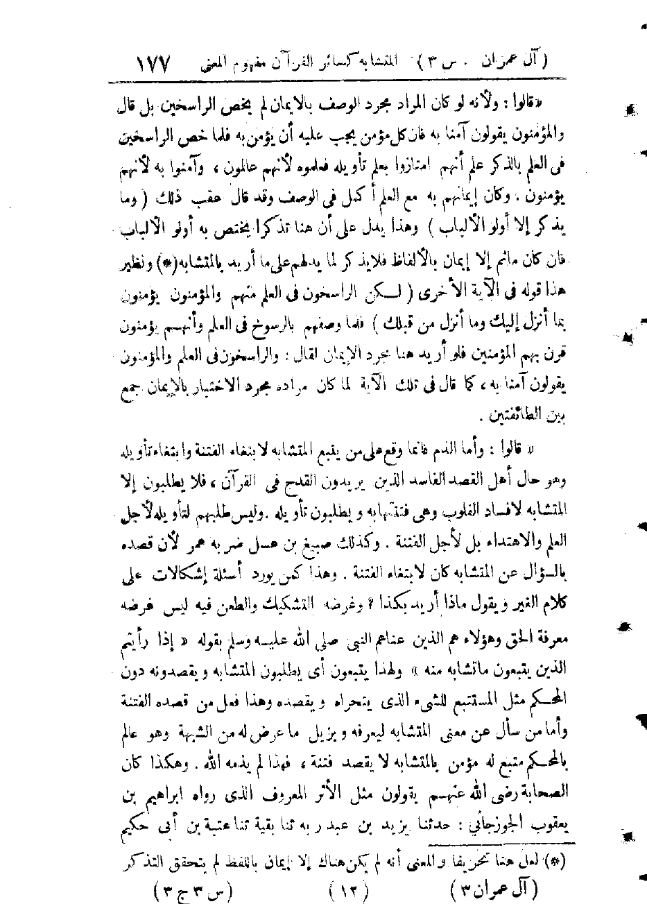 فِي الْعَجَمِيَّةِ كَذَلِكَ (أَمَّا الْأَوَّلُ) فَمِثَالُهُ لَفْظُ الِاسْتِوَاءِ فَإِنَّهُ لَيْسَ لَهُ فِي الْفَارِسِيَّةِ لَفْظٌ مُطَابِقٌ يُؤَدِّي بَيْنَ الْفُرْسِ مِنَ الْمَعْنَى الَّذِي يُؤَدِّيهِ لَفْظُ الِاسْتِوَاءِ بَيْنَ الْعَرَبِ بِحَيْثُ لَا يَشْتَمِلُ عَلَى مَزِيدِ إِبْهَامٍ إِذْ فَارِسِيَّتُهُ أَنْ يُقَالَ: راست بايستاد، وَهَذَانَ لَفْظَانِ: (الْأَوَّلُ) يُنْبِئُ عَنِ انْتِصَابٍ وَاسْتِقَامَةٍ فِيمَا يُتَصَوَّرُ أَنْ يَنْحَنِيَ وَيَعْوَجَّ (وَالثَّانِي) يُنْبِئُ عَنْ سُكُونٍ